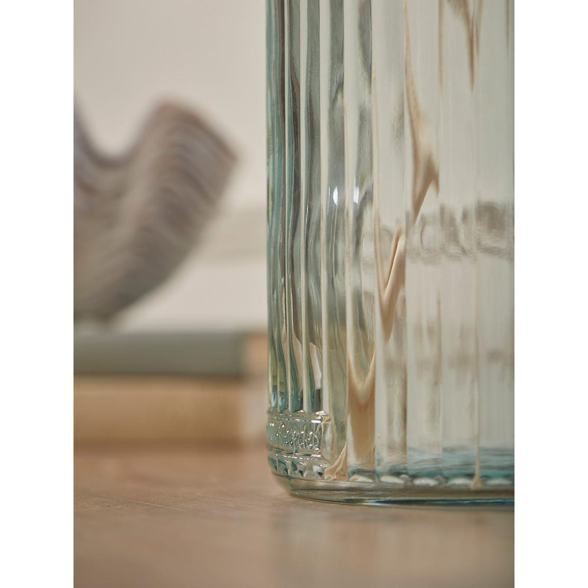 I love this bottle vase for its simple yet striking design, which adds texture and interest to both modern and rustic interiors. Its recycled glass construction gives it an eco-friendly appeal, making it perfect for sustainable styled spaces. It works especially well in mantel displays, alongside greenery or dried flowers, or as a standalone piece on a side table or shelving unit. For practical styling tips, try pairing it with contrasting textures like rough wood or soft linens to make the glass’s fluted detailing stand out. Its versatile shape means it can be styled with tall stems for height or smaller blooms for a more understated look, making it a flexible piece in any interior.