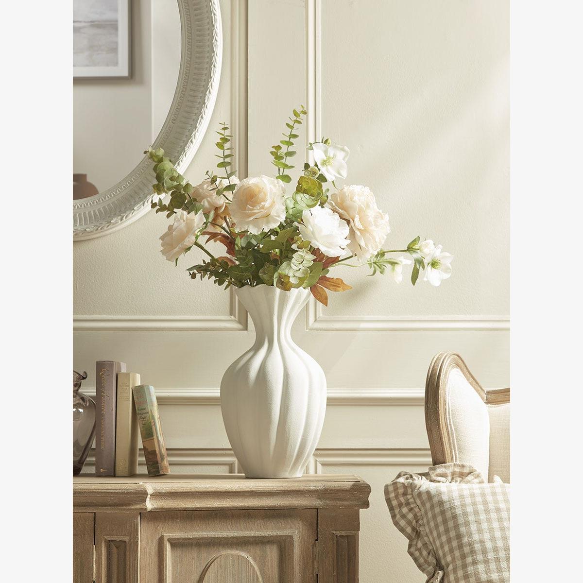 I really like the fluted stoneware vase for its simple yet elegant shape, which adds subtle texture to any arrangement. It works beautifully in both classic and contemporary interiors, making it quite versatile. For styling tips, I recommend grouping it with other ceramics or metallic accents to create an interesting layered look. It also looks great as a standalone piece on a console or side table, filled with fresh seasonal blooms or even dried flowers for a more everlasting display. Keep the colour palette in mind-its neutral tone makes it adaptable to various colour schemes, from soft pastels to bold hues.
