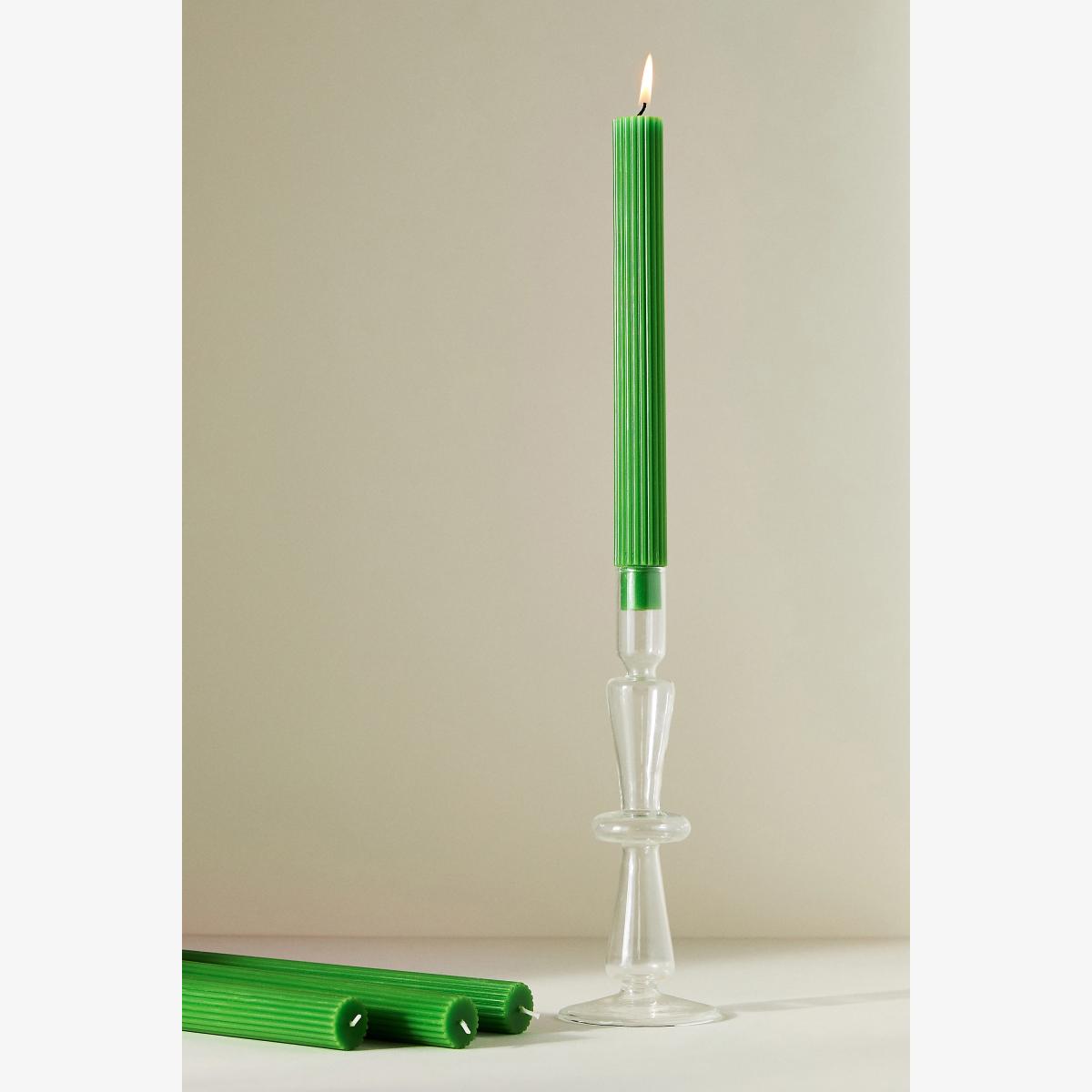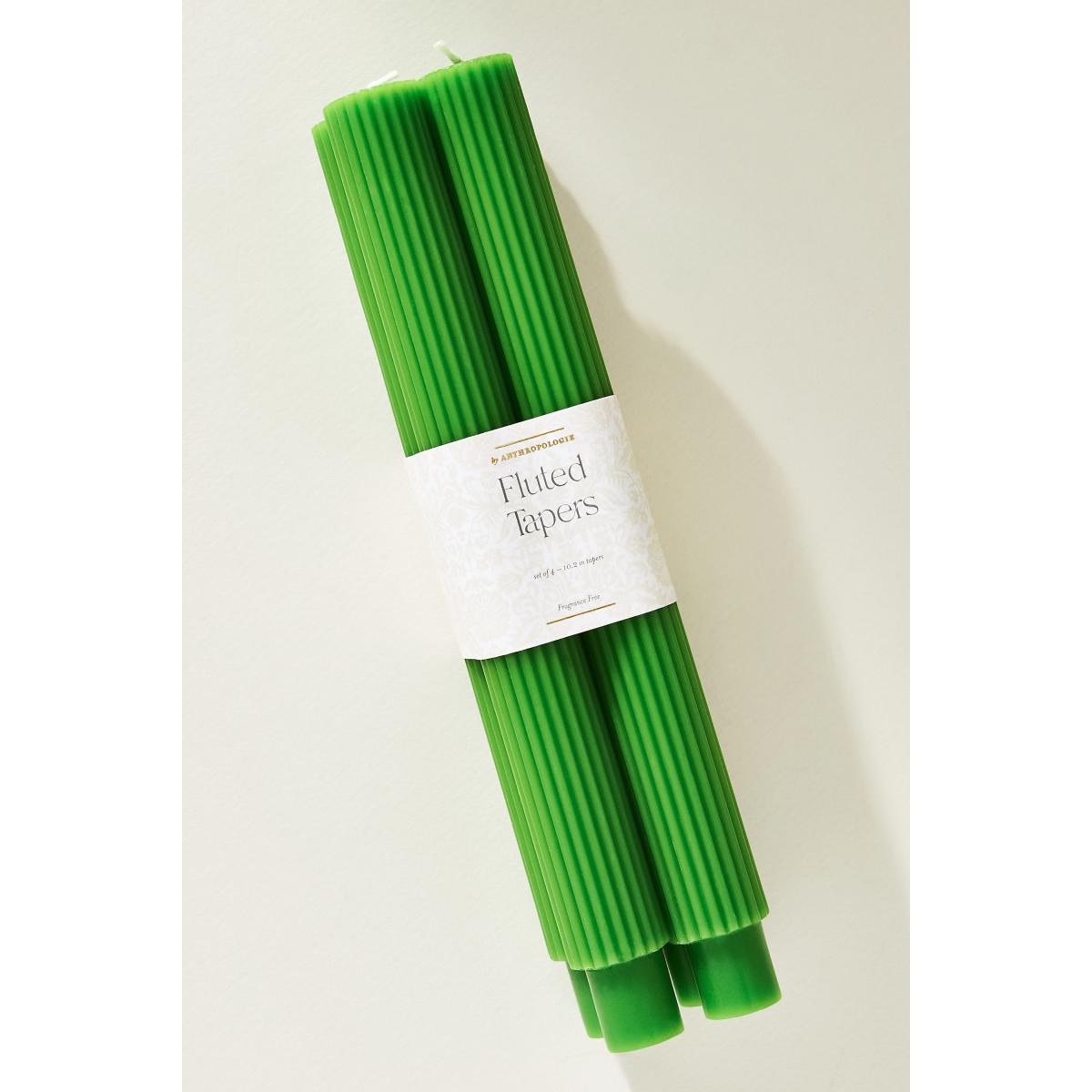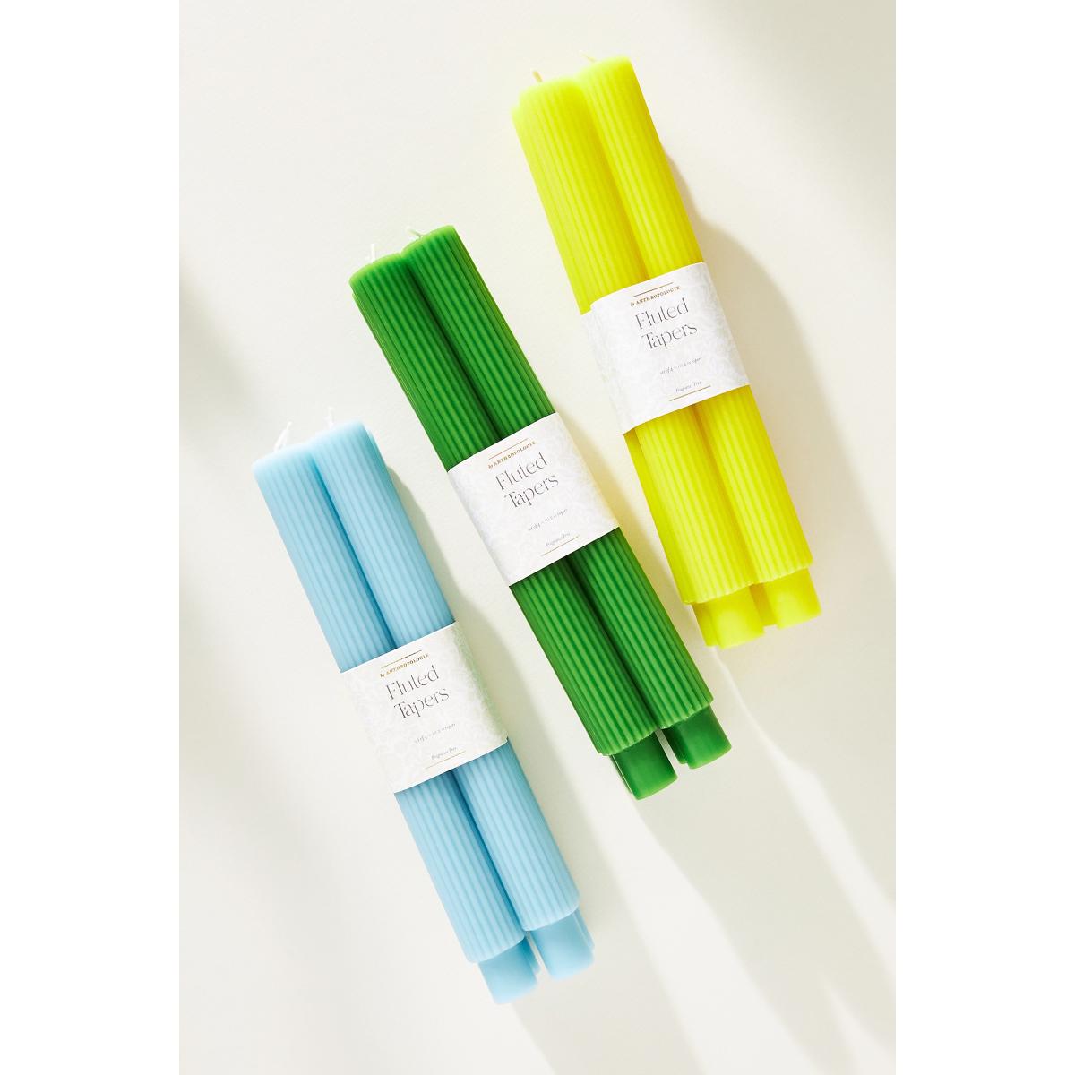 Add intention to your everyday routine with a beautifully hued pair of taper candles. A staple for dinner parties and everyday entertaining, tapers can also bring an element of mindfulness to daily meditations, yoga practices, or evening bubble baths. Fluted Taper Candles, Set of 4 by Anthropologie in Green