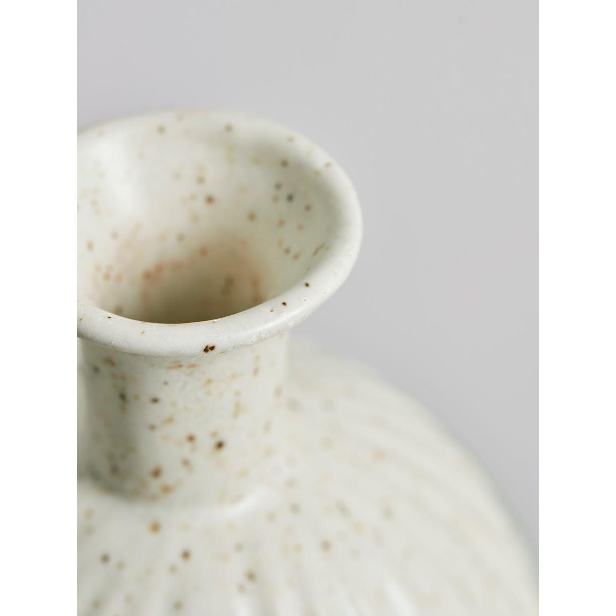 With a narrow neck suitable for a single stem, this vase is further enhanced by a lovely speckled pattern on a semi-matte glazed surface, as well as gentle fluting to the body.