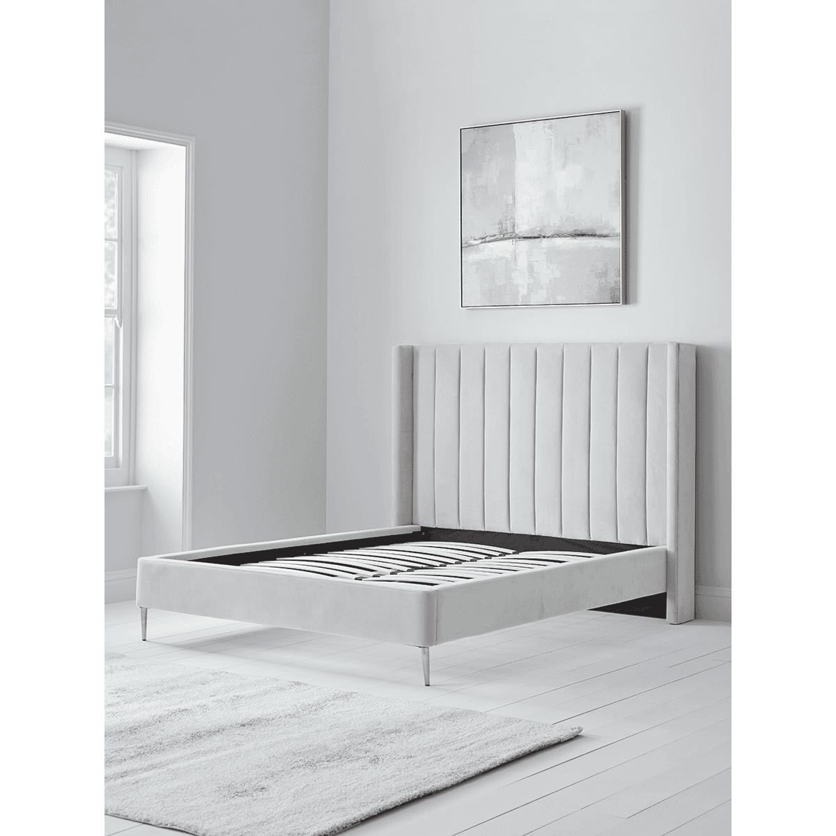 Upholstered in a soft grey velvet, with a high, ribbed headboard and slight wings on either side to create a cosy, cocooning effect, our Fluted Velvet Kingsize Bed will provide an opulent focal point for your bedroom. Each bed comes with sprung plywood slats and metal feet for a fabulous luxe look. To complete your bed, we offer an exclusive range of luxurious made to order mattresses including the Dreamy 1400 Pocket, Sublime 2000 Pocket, Deluxe 3000 Pocket and Opulent 4000 Pocket.