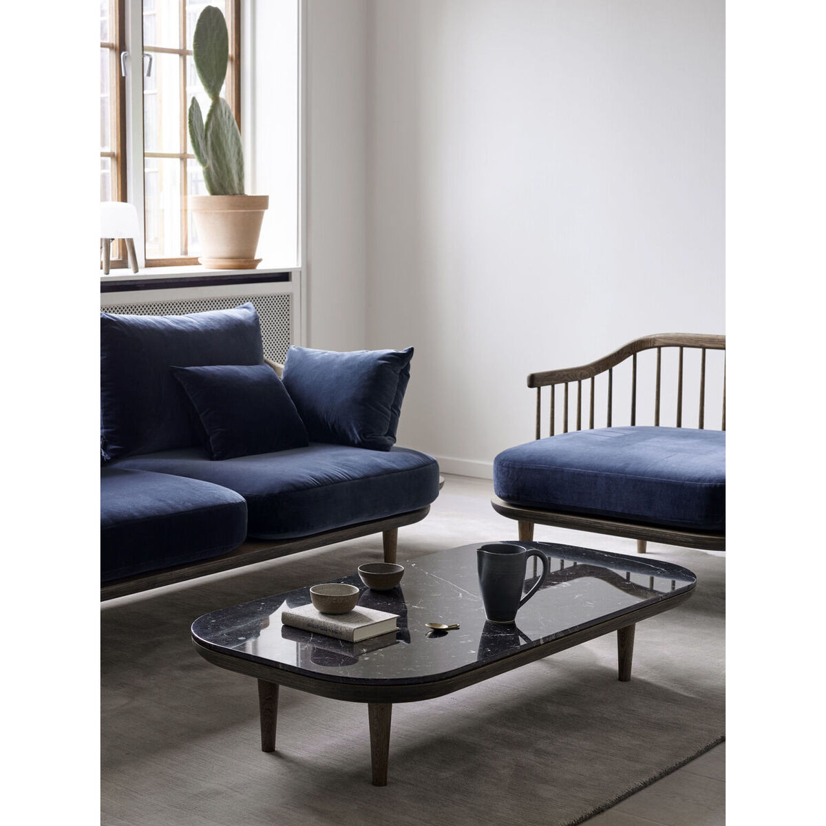 Materials: Solid oak, oak veneer and plywood treated with either smoked oil or white pigmented oil. Honed Bianco Carrara marble table top on white oiled version and polished Nero Marquina marble table top on smoked oiled version. The FLY Series by SPACE Copenhagen is a lounge collection pushing the idea of lounging to its fullest, FLY is a series that allows the user to sit, lie, rest, and relax.