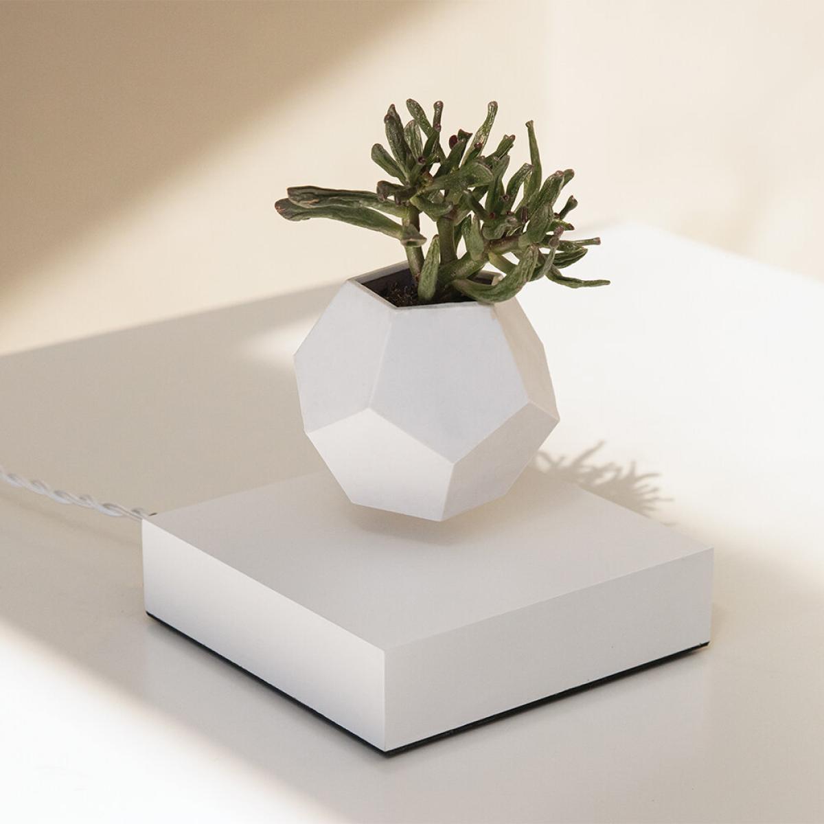Add intrigue to your interior with this Lyfe Planter from FLYTE. Matt white in colour, it features a twelve-sided geometric planter crafted from silicone, that appears to levitate above an oak base. Wonderfully hypnotising, this unique piece will make a statement in any corner of your home. Designed in Sweden, the base contains a custom shaped magnet that allows to the planter to slowly rotate in mid-air, creating a plethora of shadows below it. With no mechanism controlling the rotation, the planter turns in any direction, depending on what plant you have inside. Impossibly innovative, it features it's own drainage system, allowing water to drain into a hidden inner reservoir. Key features: * Material: oak, silicone * Base dimensions: 15x15x3.8cm * Planter dimensions: 8x10cm * Planter holds up to 250g * Electro-magnets in the base make the planter levitate * Planter slowly rotates in mid air in any direction * Creating different shadows above the base * Water drains into a hidden inner reservoir * AC adapter included