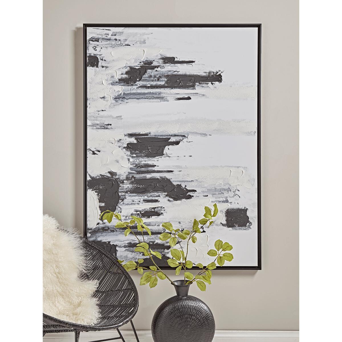 A stylish monochrome piece, yet a canvas that is strikingly decorative, due to the richly textured strokes across its surface. An abstract depiction of the dreamy stillness of morning mist, or the heavy landscape in fog, our Fog Abstract Framed Canvas comes set in a black frame to bring statement and a restful tone to any space.