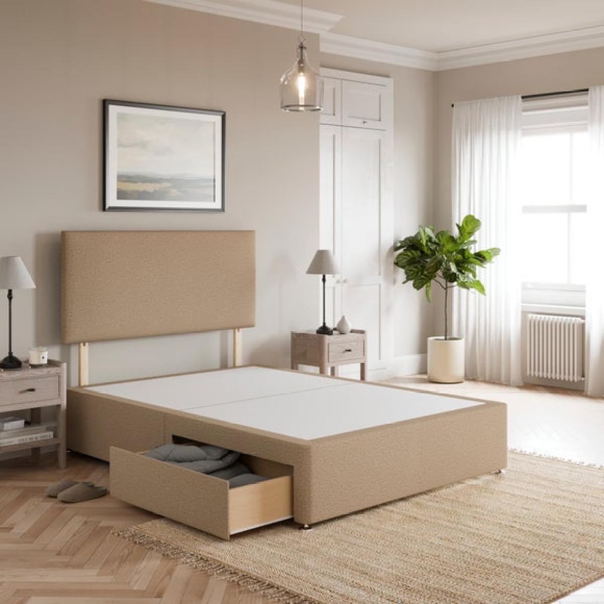 I love this divan base with headboard for its clean, minimal look that easily adapts to various interior styles, from contemporary to relaxed classic. Its neutral tone provides a versatile foundation, making it ideal for layering with colourful or patterned bedding and cushions. Practical styling tips include adding a chunky throw or textiles on the bed for comfort and visual interest, while pairing it with a statement bedside table or a cosy rug to define the sleeping area. It works well in bedrooms that prioritise simplicity and function, and its understated design helps create a calm, clutter-free space.