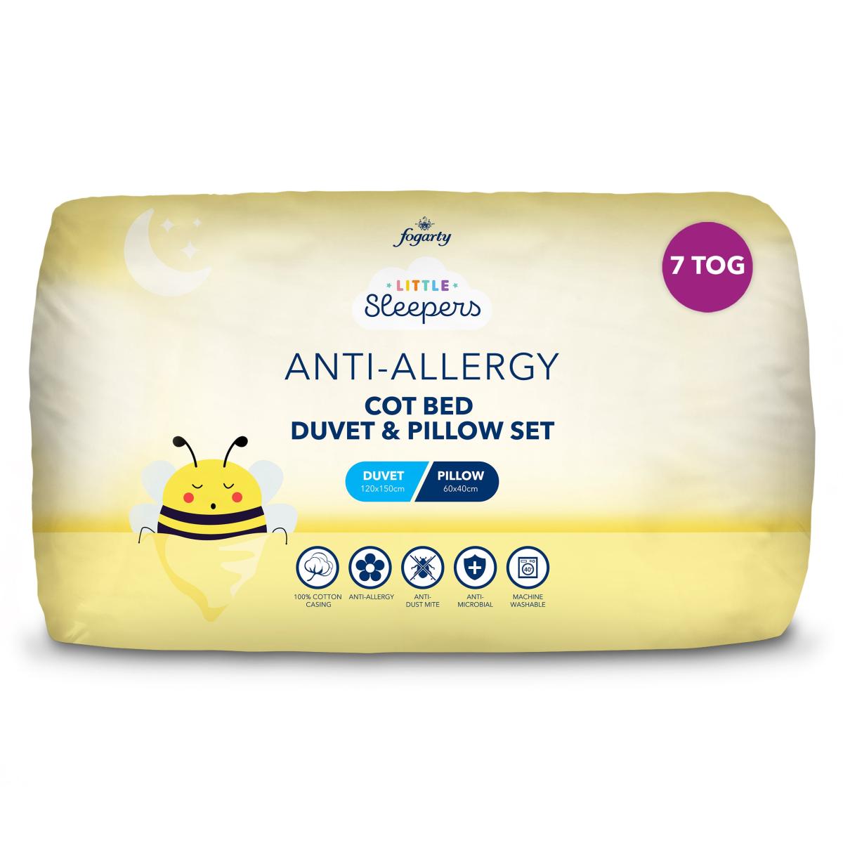 Fogarty Little Sleepers Anti Allergy 7 Tog Cot Bed Duvet and Pillow Set White