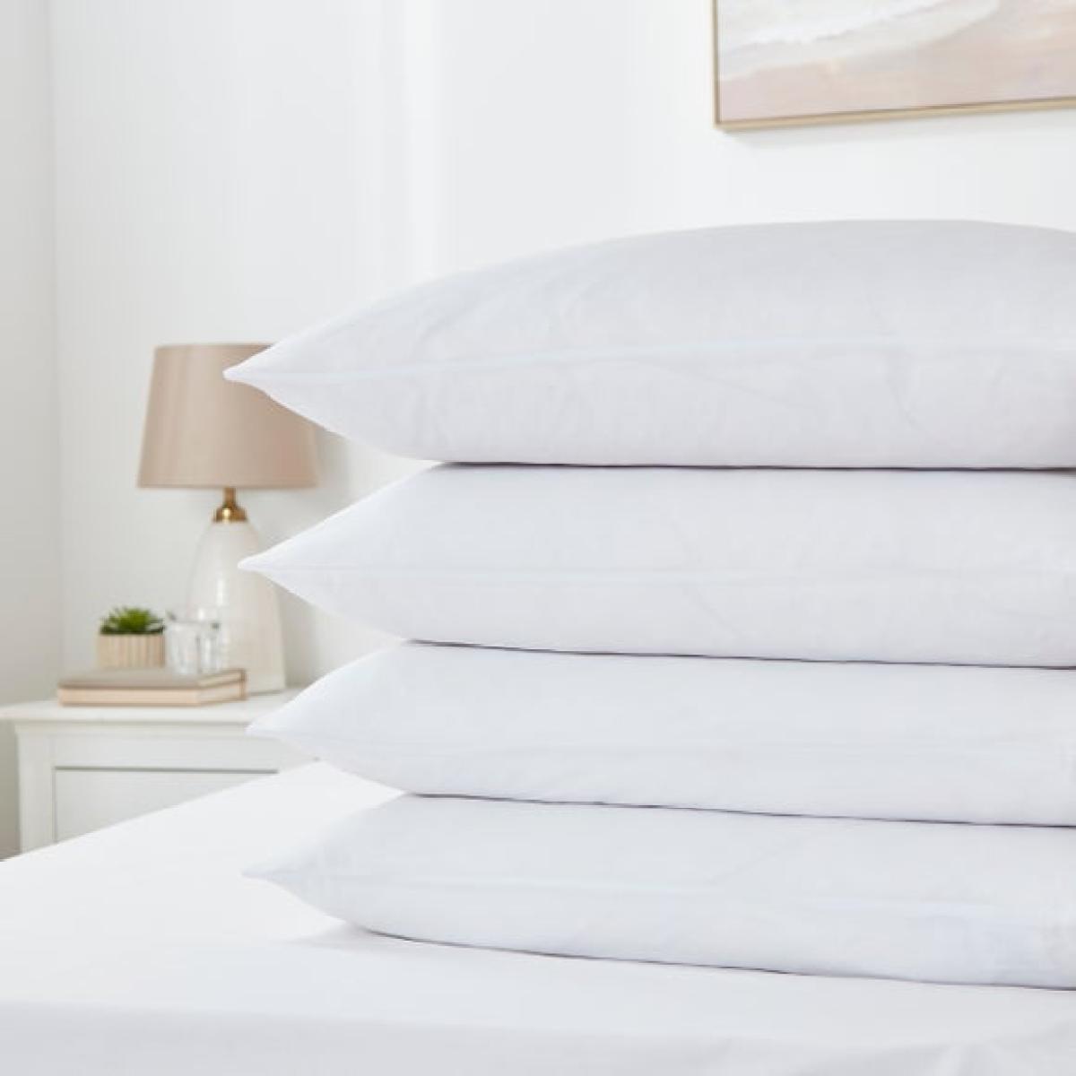* 4 pack of pillow protectors * Great value product * Soft polyester These pillow protectors are crafted from soft polyester, ensuring a gentle touch against your skin while providing exceptional protection. Shield your pillows from spills, stains, and pesky dust mites, and experience a whole new level of comfort during your slumber. The durable design guarantees they can withstand regular use and frequent washing without losing their shape or softness, maintaining their pristine condition for years to come. Embrace a healthier sleeping environment with their hypoallergenic properties, creating a barrier against allergens and irritants. The pack of four protectors ensures you can safeguard all your pillows at once or keep spares for future use or guest bedrooms. With a standard size that fits most pillows effortlessly, these 4-Pack Pillow Protectors are a must-have addition to your bedding essentials.
