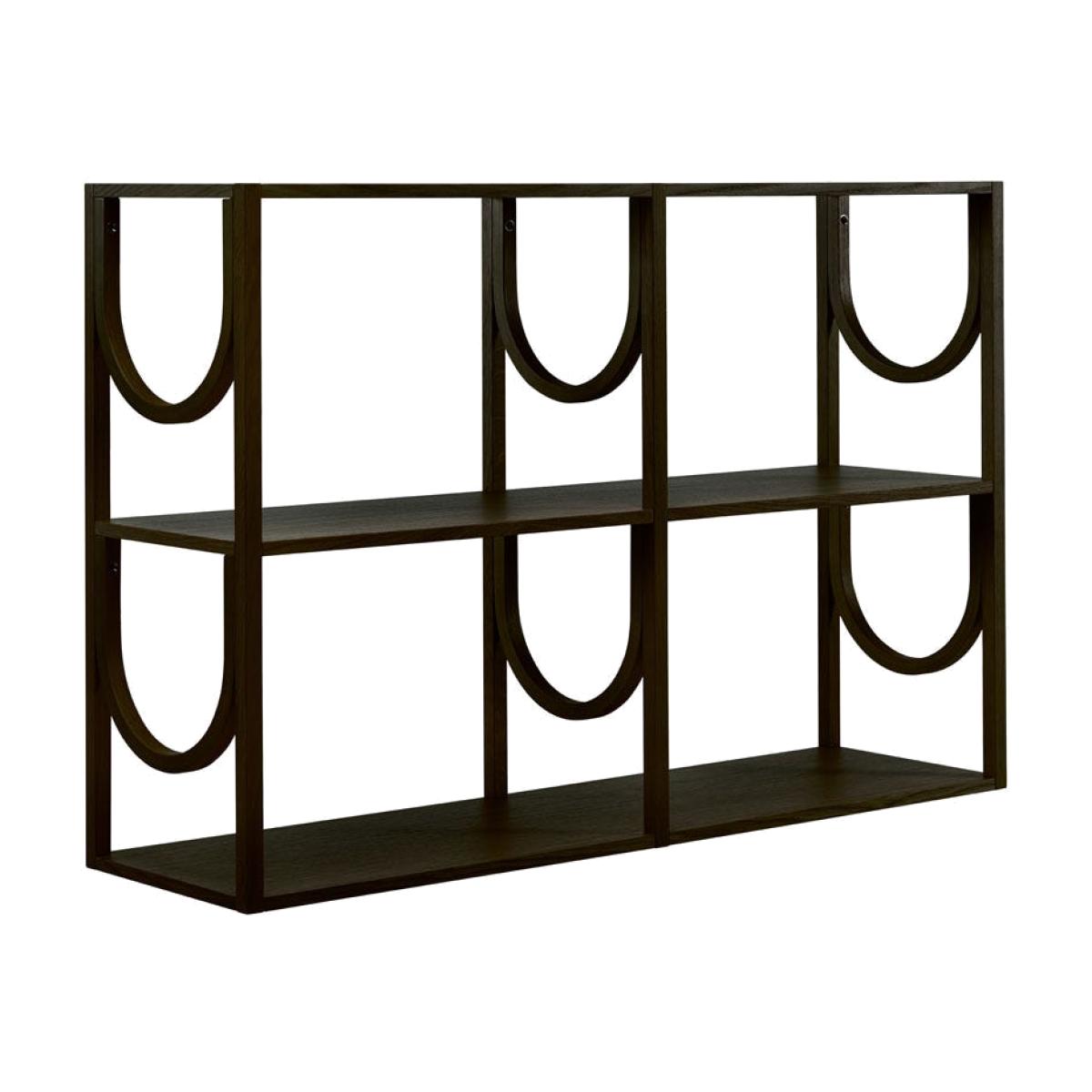 The Fogia Arch High Shelving in Wenge Oak offers a striking yet functional statement piece that's ideal for modern and contemporary interiors. I love its sculptural design, which adds visual interest both as a standalone feature or as part of a larger shelving arrangement. It works particularly well in minimalist or industrial spaces, where its dark timber can contrast beautifully with lighter colour schemes, or in darker, more moody interiors to create depth. Practical styling tips include layering books and accessories to play with its architectural silhouette, or using it to display plants, art, or statement objects for an eclectic, curated look. Its bold form makes it a versatile piece that can act as a focal point in living rooms, offices, or even bedrooms.