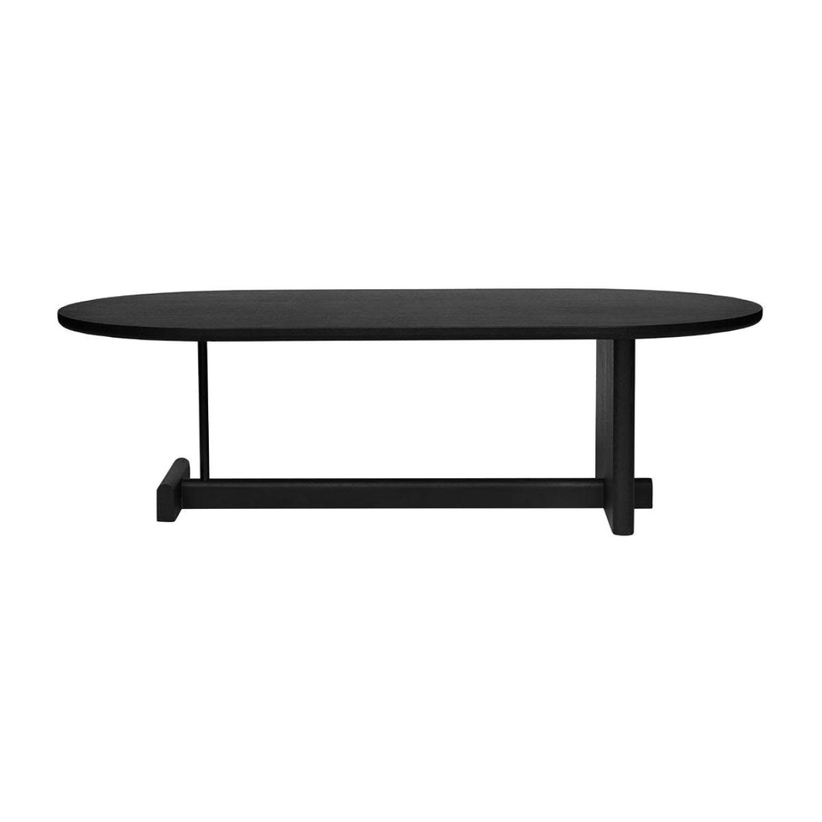 The Koku table is a sculptural combination of solid oak and thin metal tubes that plays with balance and proportions. Designed with Norm Architects. Inspired by the works of revered American-Japanese craftsman, architect and designer George Nakashima, the Koku occasional table sets the scene for surface arrangements at home or in the workplace. This long, oval design sits low to the ground, suiting use as a coffee table or book display. Lightweight yet sturdy, it is easy to move around. As part of the Koku table range, it is available in round or oval shapes in various heights and a number of finishes.