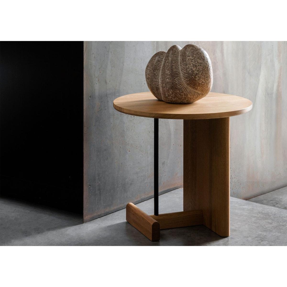 The Koku table is a sculptural combination of solid oak and thin metal tubes that plays with balance and proportions. Designed with Norm Architects. Inspired by the works of revered American-Japanese craftsman, architect and designer George Nakashima, the Koku occasional table sets the scene for surface arrangements at home or in the workplace. This long, oval design sits low to the ground, suiting use as a coffee table or book display. Lightweight yet sturdy, it is easy to move around. As part of the Koku table range, it is available in round or oval shapes in various heights and a number of finishes.