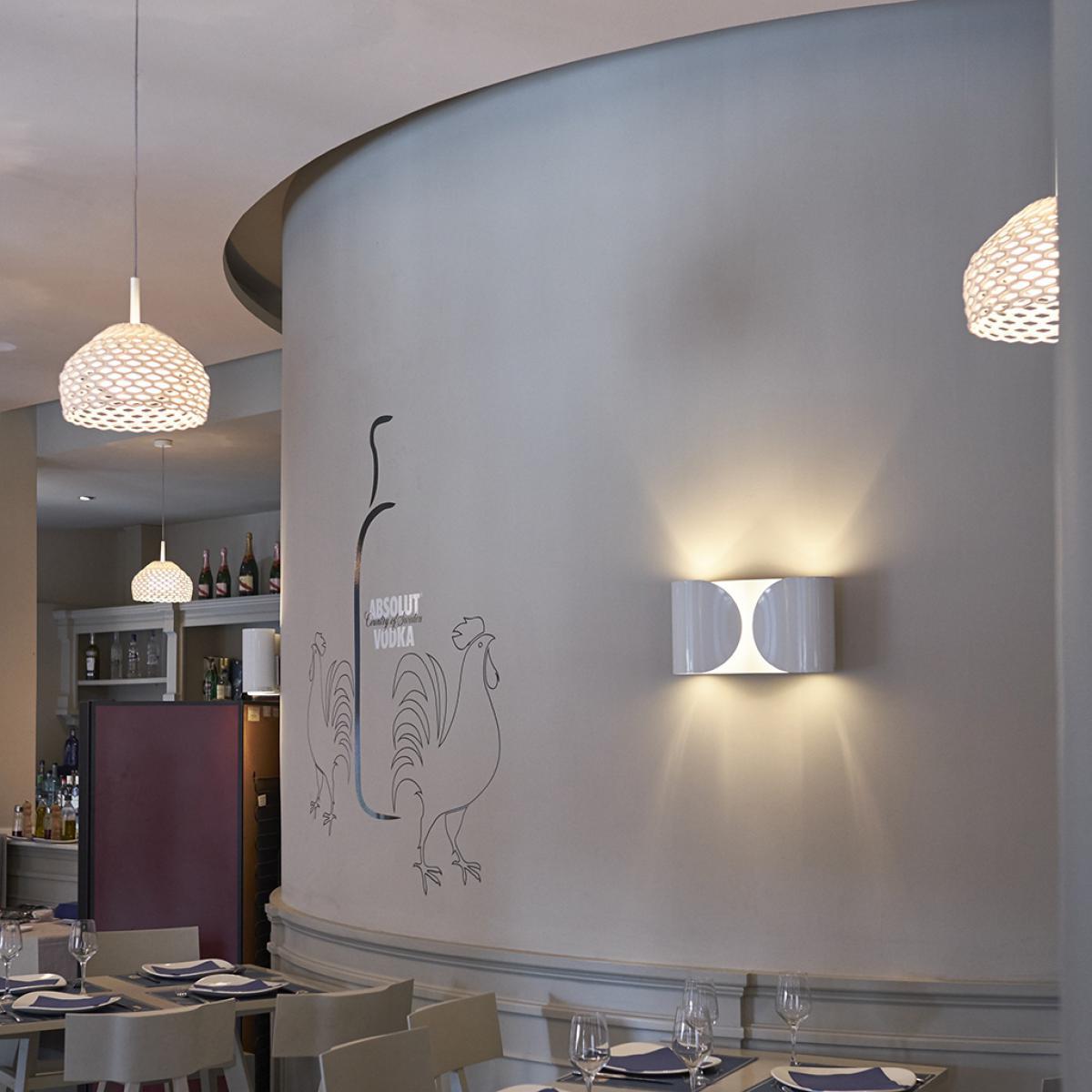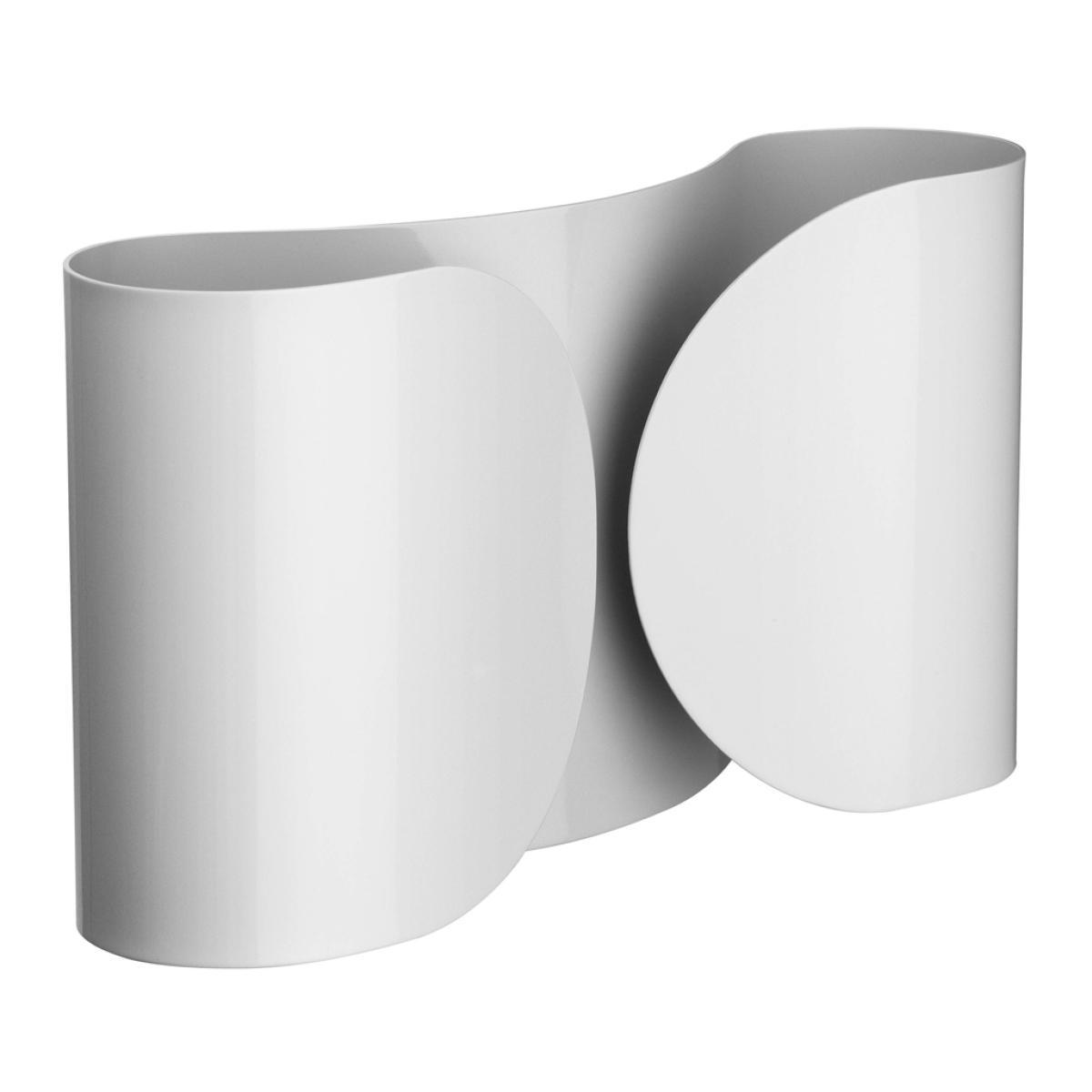 Inspired by the form of a shirt cuff, the Foglio Wall Light in a glossy white finish by Tobia Scarpa is simultaneously timeless and contemporary, crafted from powder-painted pressed steel, folded in on itself to create an elegant enhancement for your wall space. Mounted on two injection-moulded nylon supports, the Foglio emanates beautifully angled indirect light. The innovative feature wall piece looks like a sculptural piece when turned off, and a lighting installation when on. Tobia Scarpa took inspiration from the everyday when creating the Foglio, after he noticed the elegant folds of his shirt's cuffs, translating them into a useful yet beautiful lighting design. Requires 2 x Max 10W E27 LED bulbs (not included).