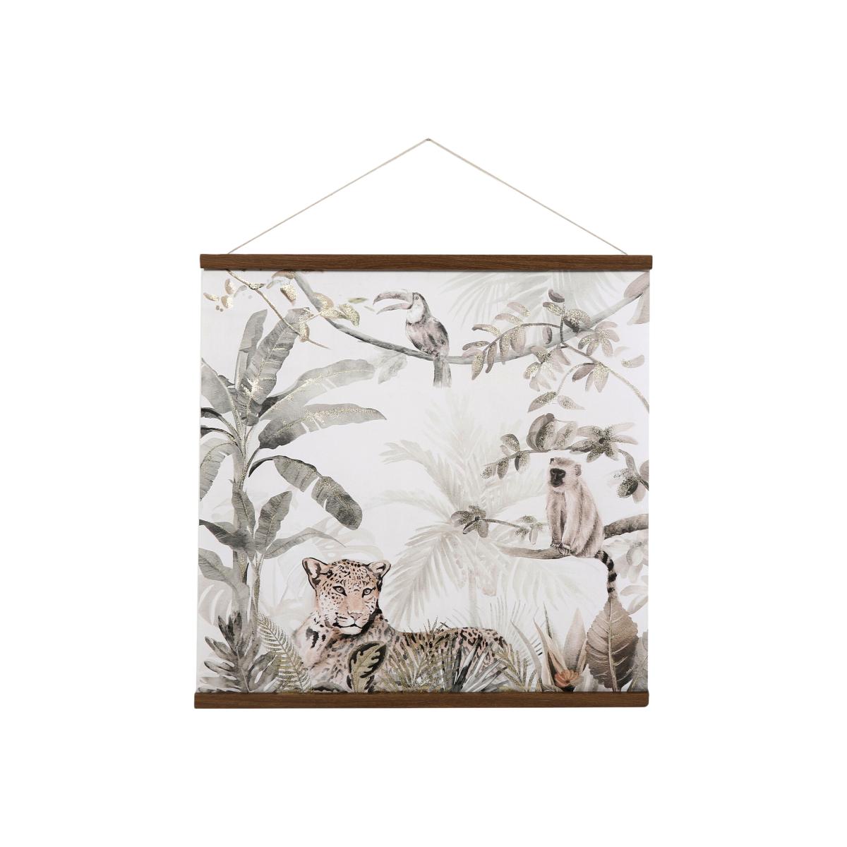 The Foiled Jungle Tapestry Style Art is the perfect wall hanging for any animal lover. Inspired by tapestries, this art is available in two designs and is easy to hang with the included string. Featuring some of your favourite jungle animals and foliage in muted tones of green and brown, this will look beautiful on your living room, hallway, or bedroom wall.