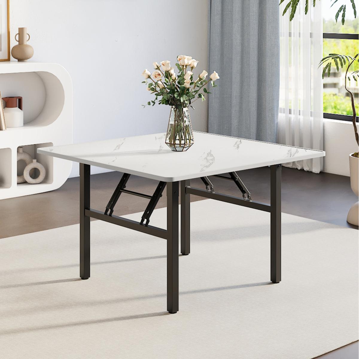 For a delightful afternoon tea experience, a stylish and practical coffee table is essential. This foldable coffee table features a smooth, corner-free design that maximises space efficiency. The surface boasts an elegant marble texture, while slightly raised edges prevent items from easily sliding off. Supported by sturdy iron legs with anti-skid pads, this table reduces floor wear and ensures overall stability. Durable and well-constructed, this folding coffee table adds a touch of beauty to your space and serves as an ideal addition for your afternoon tea or as a small dining table. With no assembly required, it's ready for immediate use.