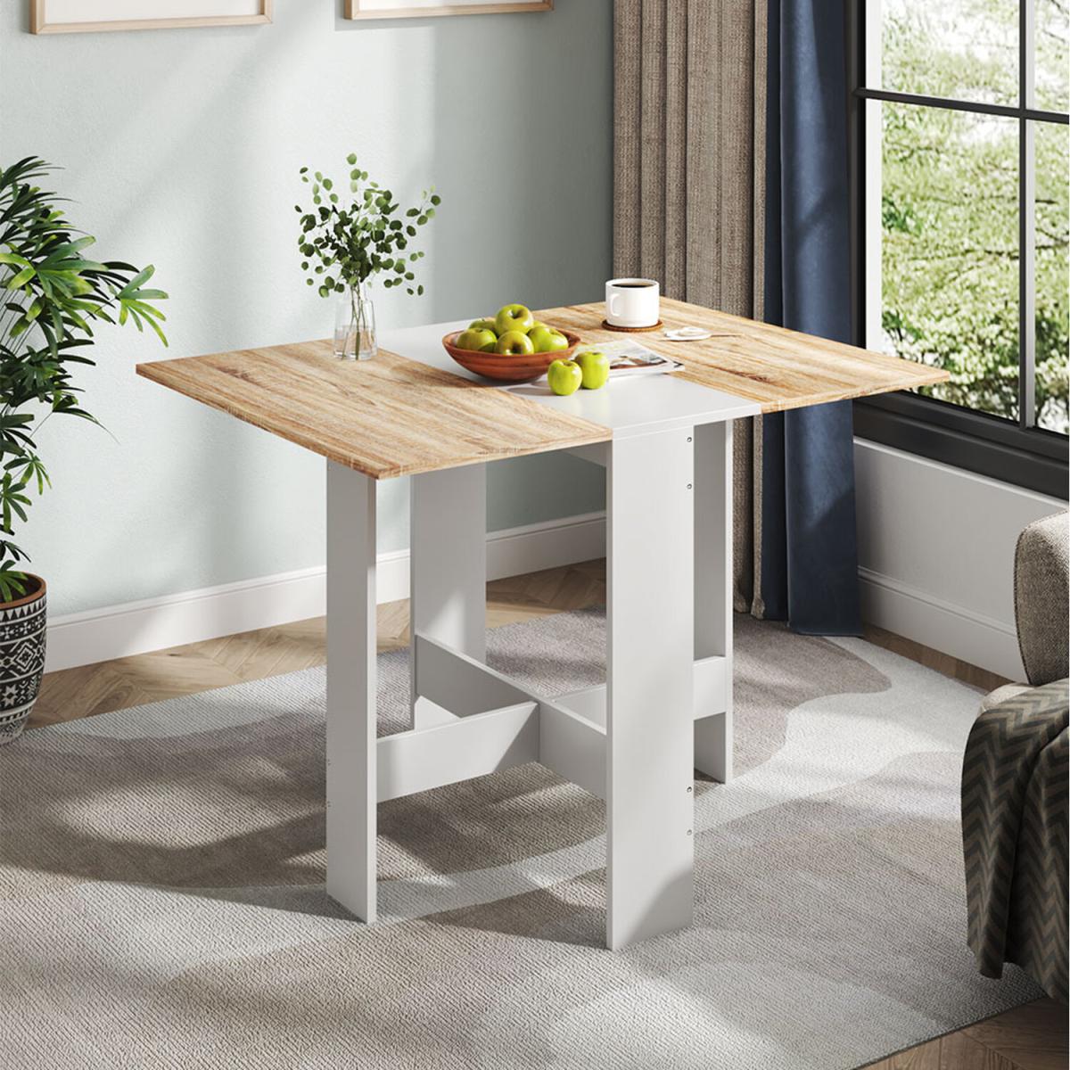 A foldable dining table offers versatility in your furniture choices, bringing convenience to your everyday life. This dining table features a three-part tabletop, with the section with wood texture designed to fold, allowing you to adjust the surface area based on the number of diners. Its stable base design ensures excellent load-bearing capacity. Lighter than traditional solid wood tables, it's easy to move and reposition when folded. The smooth, waterproof surface is simple to clean, making maintenance hassle-free. When folding the table, be mindful of any obstacles to prevent damage. With its sturdy construction and flexible design, this foldable dining table saves space and can also serve as a coffee table or decorative piece, making it both durable and practical.