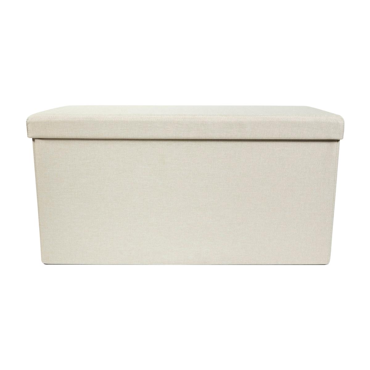 Foldable Faux Linen Cream Ottoman Cream
