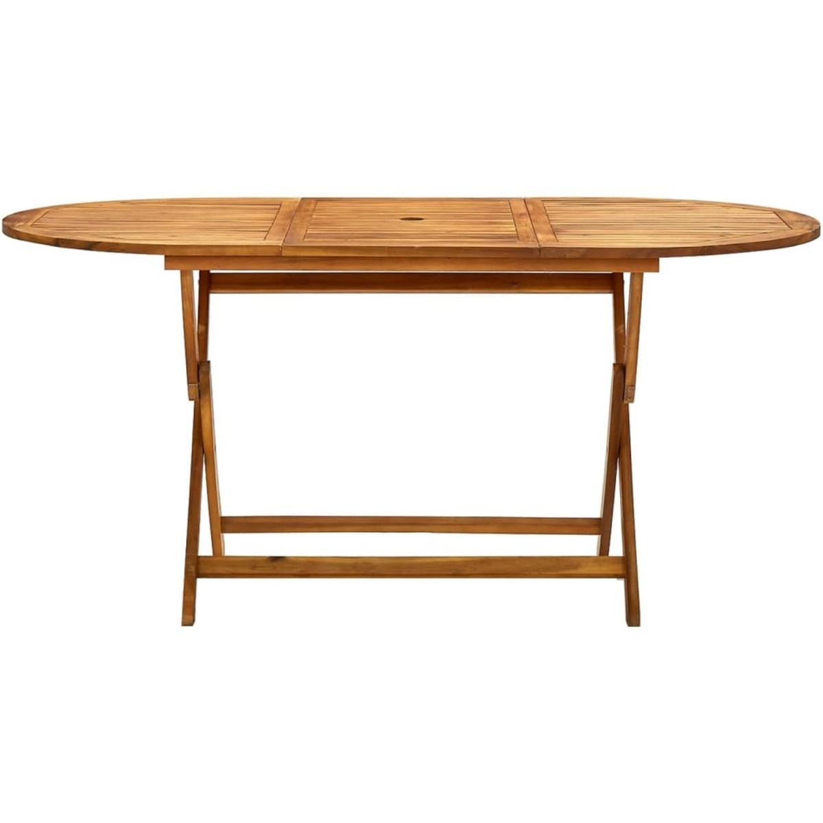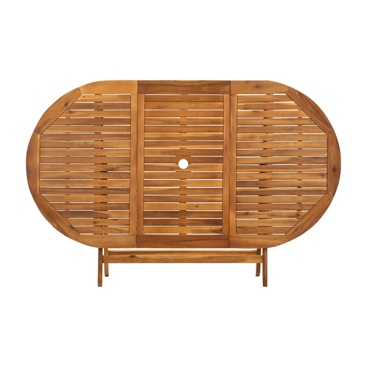 This stylish and contemporary dining table will add a luxurious touch to any dinner. This wooden dining table will be the focal point of your garden, terrace or patio. The outdoor table is made of solid acacia wood, a tropical hardwood that is weather-resistant and highly durable. The oil-finished surface also makes it easy to clean with a damp cloth. The table can be folded away to save space when not in use.