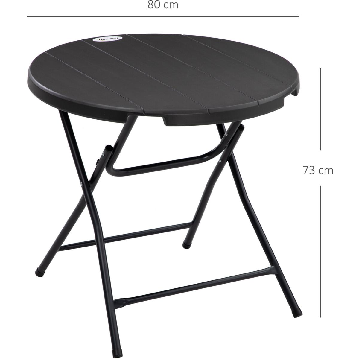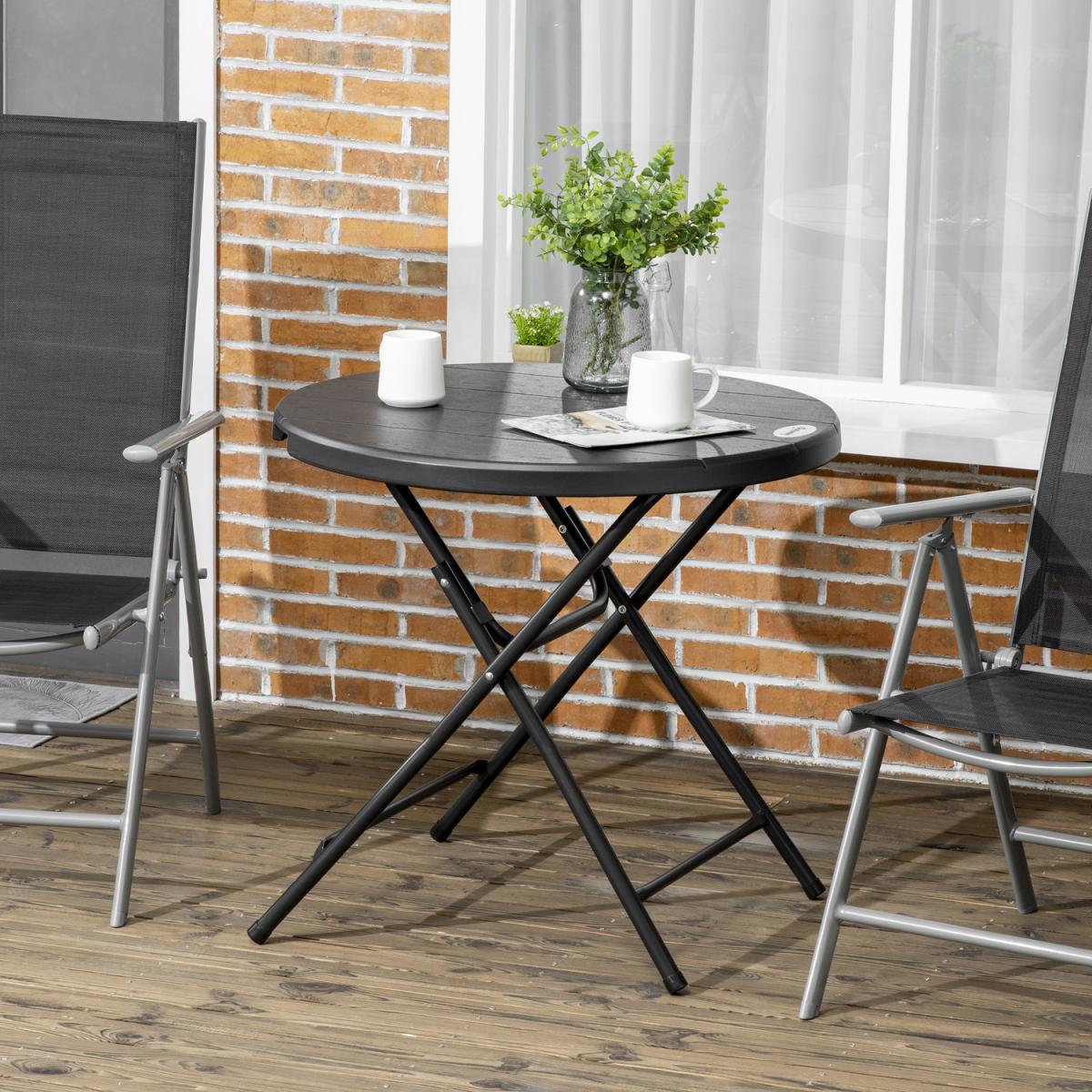 A folding outdoor dining table is a must for homes short on space. A four-seater size for you to sit with company, morning through to night. It features a steel frame for a strong structure - the frame is foldable so you can store it easily and bring it out whenever you need. A plastic tabletop for a sturdy base to dine from, formed into a wood-effect look for classic style.