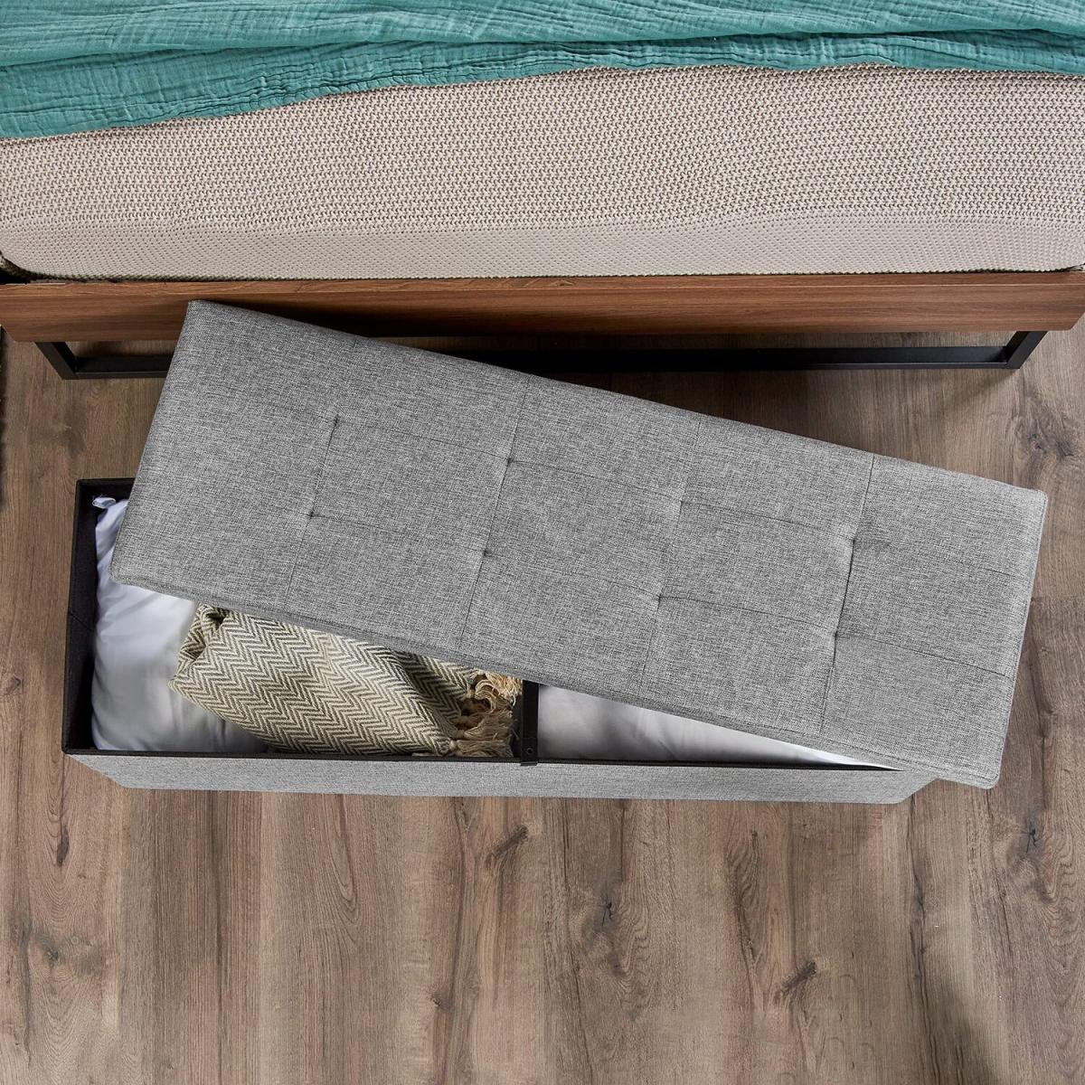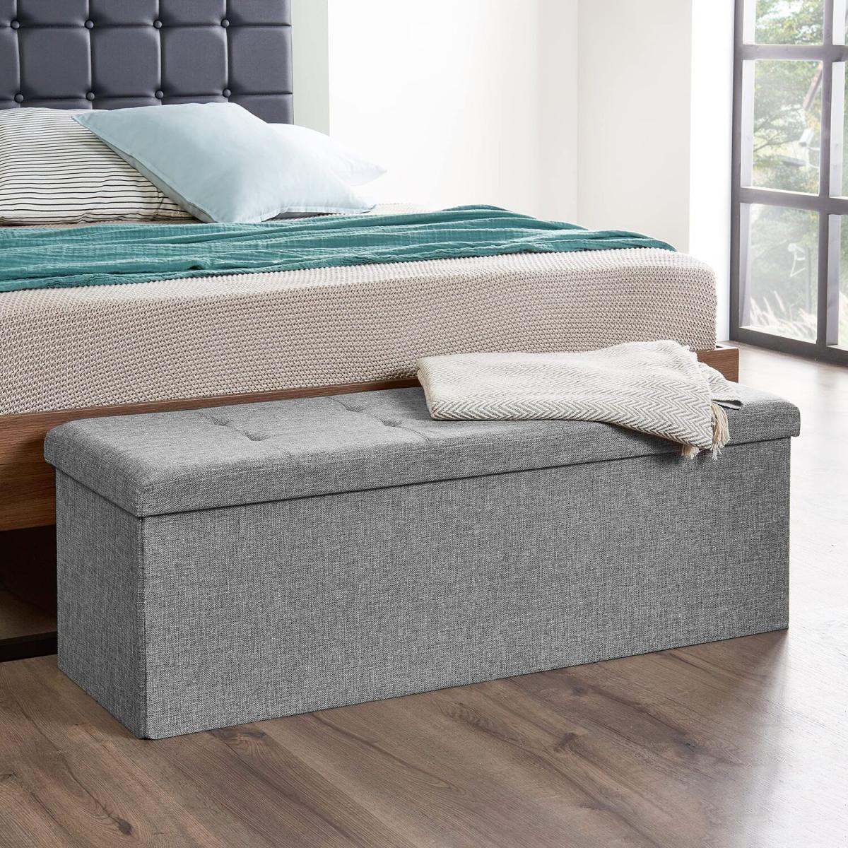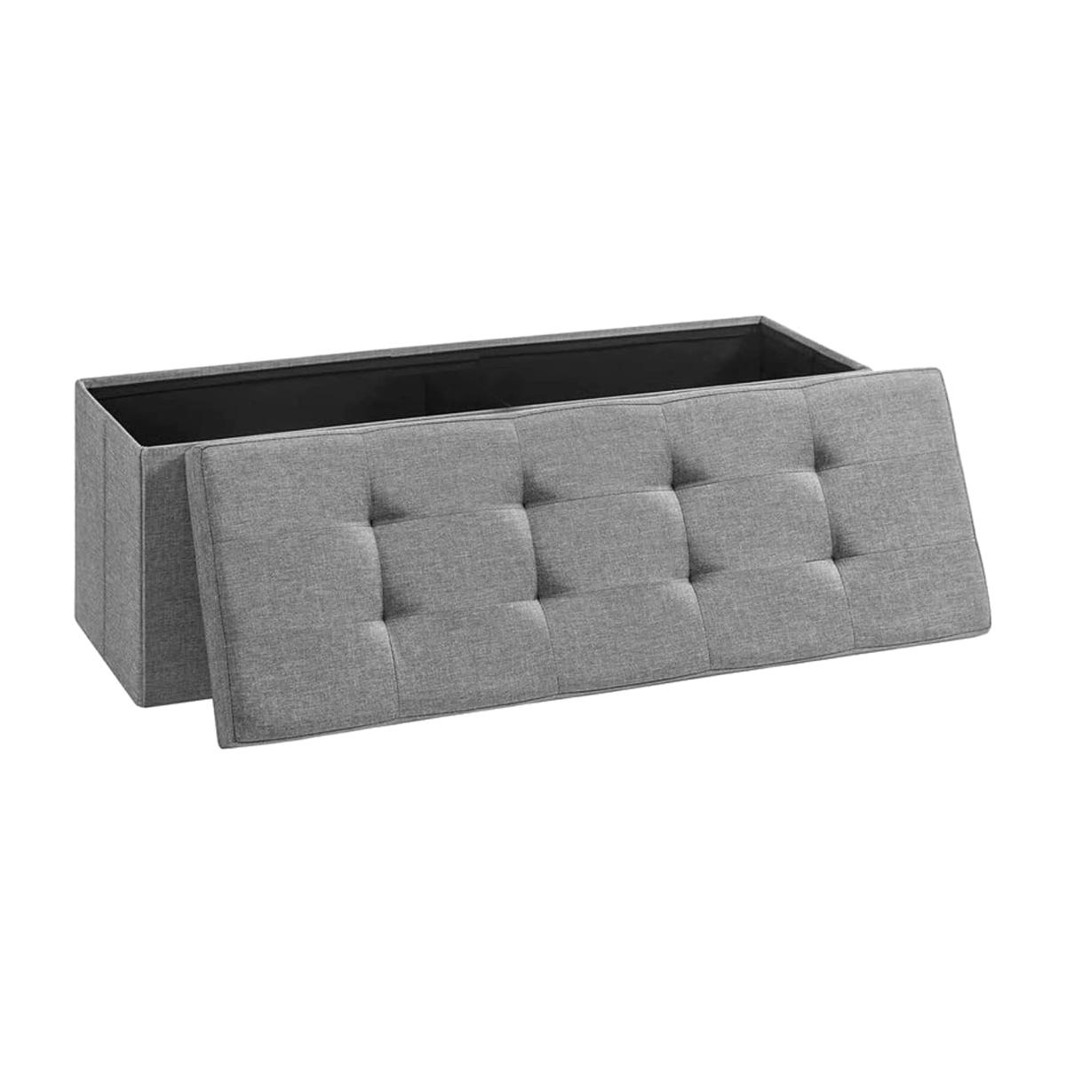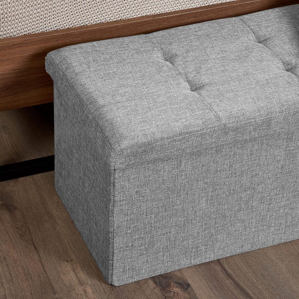 Foldable Ottoman Storage Box Footstool - Light Grey / Large