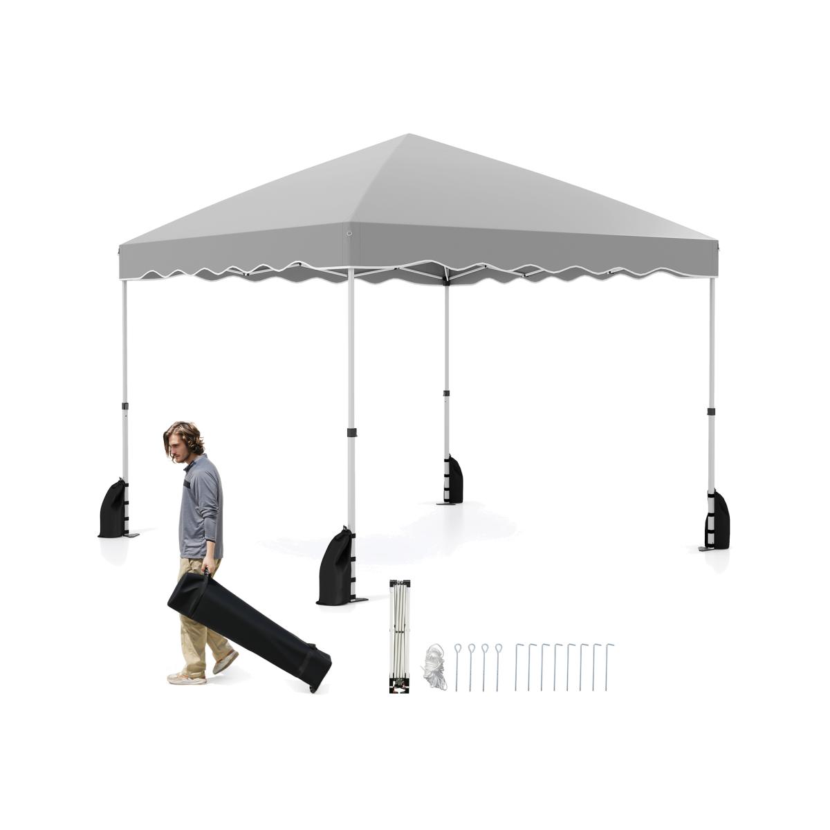 Our pop up canopy tent measures 300 x 300 x 266/276/286 cm (L x W x H), complete with a 3-level adjustable height, perfect for various outdoor activities such as commercial events, camping, festivals, tailgating, and backyard gatherings. It boasts a convenient pop-up structure, making setup and takedown a breeze, requiring no additional tools. When not in use, you can easily collapse it and store it in the portable wheeled storage bag, allowing for easy movement. Foldable Patio Canopy Tent - Grey