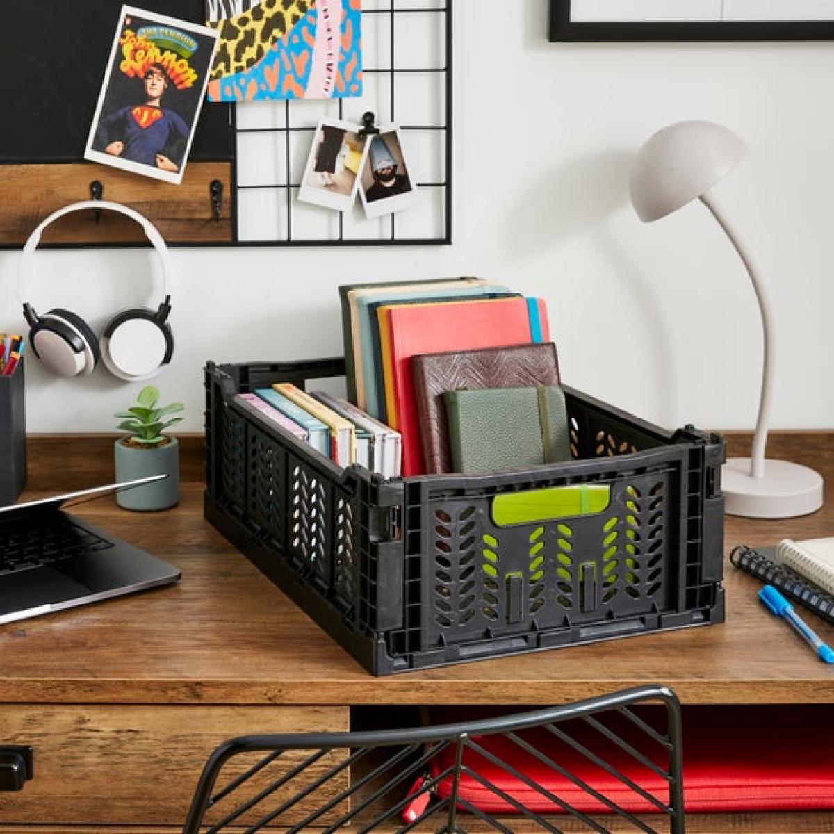* Available in a range of colours * Easy to storage away * Optimise and organise your space Brighten up your storage with this Foldable Storage Crate, available in a range of bold and cheerful colours. Lightweight yet sturdy, it’s ideal for keeping everything from stationery to snacks neatly tucked away. Easy to fold and unfold, it’s perfect for saving space when not in use. Whether slotted onto shelves or popped on your desktop, it adds a fun splash of colour while keeping clutter at bay. Great for colour coding your essentials and easy to grab on the go. Practical, playful, and effortlessly tidy.