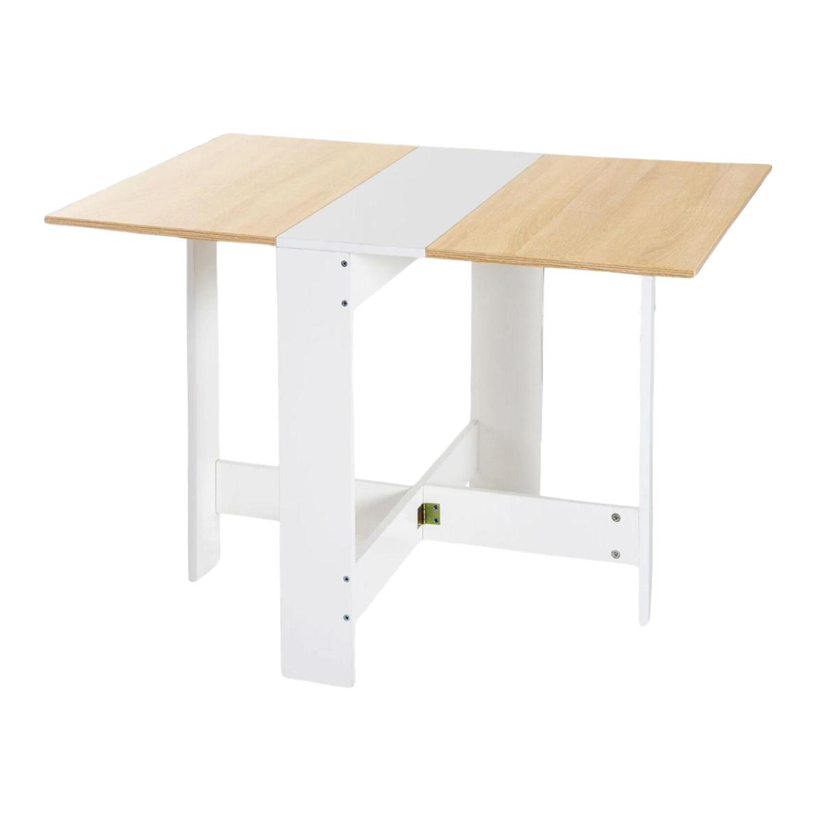 Enjoy a spacious bistro table top that comfortably accommodates dining, working, or studying activities, providing enough space for up to 6 people to gather around. This drop-leaf dining table features a convenient bottom mechanism that allows for easy folding, making it ideal for transport and enabling space-saving storage when not in use, transforming into a sleek console table. Crafted from high-quality MDF and reinforced with double-sided stickers, this space-saving table is not only easy to maintain but also boasts lasting durability, ensuring years of reliable use. The butterfly table is equipped with extra-wide supporting feet that provide added stability, ensuring a secure and steady surface for various activities. When unfolded, the table measures 103cm in length, 76cm in width, and 73.5cm in height, providing ample space for your needs. When folded, it measures 76cm in length, 27cm in width, and 73.5cm in height, making it compact for storage. Assembly is required.