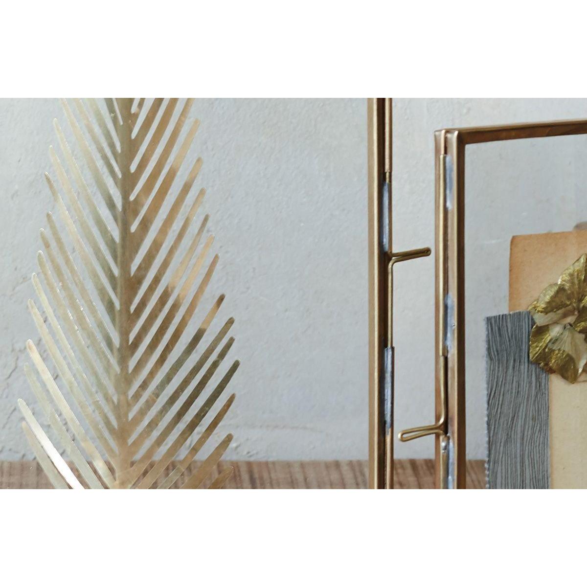 I love this brushed brass frame for its versatile, timeless appeal. It works beautifully in both contemporary and vintage-inspired interiors, adding a touch of warmth and metallic shine without feeling overly ornate. Perfect for displaying small collections of pressed leaves or personal photos on a shelf or coffee table, it encourages a curated, personal feel. For styling, consider pairing it with other brass accents or natural textures like wood and greenery to create a balanced look. Its foldable design also makes it practical for changing up displays easily, making it ideal for those who love a flexible, styled vignette.