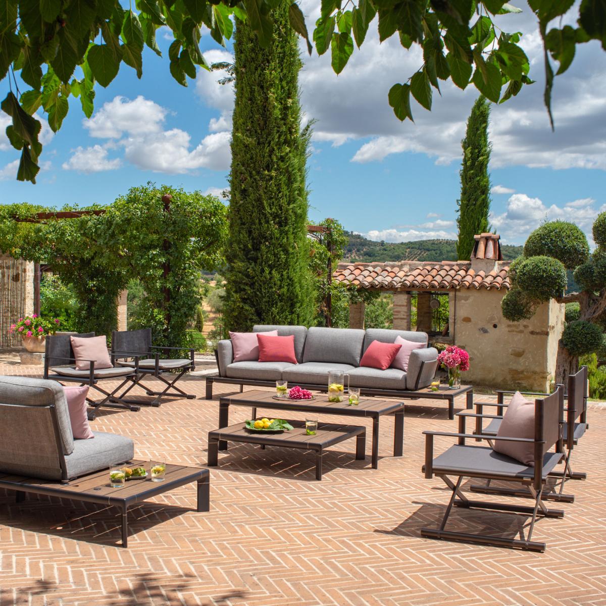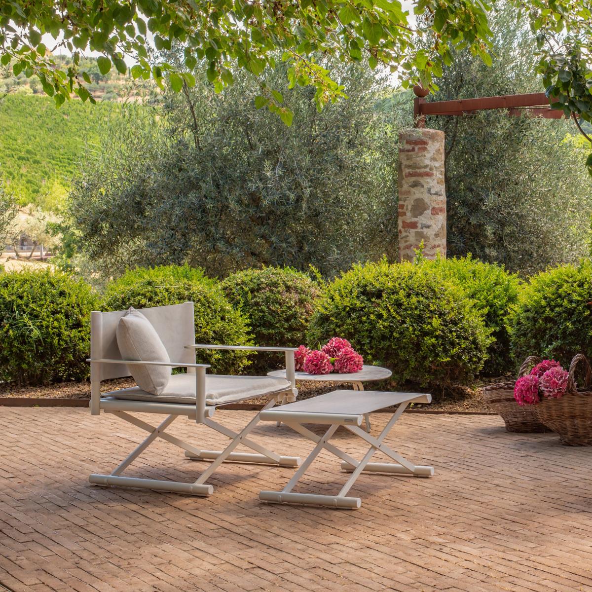 Terra is a generously sized folding armchair, which can migrate from sea to land, outdoors to indoors, and vice versa. Design, lightness, solidity and choice of materials, that’s what makes it so special. Terra is a transversal product full of charm, as it adapts to any space and lends itself to the most varied mix-and-match with other collections. A folding, functional, welcoming armchair, which perfectly complements relaxation spaces such as the dining room and living room, both indoors and out. The light structure is made of aluminium. The vintage-style backrest is made of faux leather (nylon fibre eco-leather). The seat is made of Emu Tex technical fabric. Very hard-wearing, this technical outdoor fabric is both tear-resistant and anti-UV treated. It’s heat-resistant and very easy to maintain. The flexibility of the fabric as well as the ergonomics of the product ensure optimal comfort, even with extended use. With more than fifty years’ experience in metalworking, Emu expresses its style in gardens and on terraces all over the world. Emu creations have become icons in the world of "made in Italy" design and quality. Emu carries out and controls all the production stages within its factory in Marsciano, in the heart of Umbria. All phases of the production process are subject to rigorous checks.