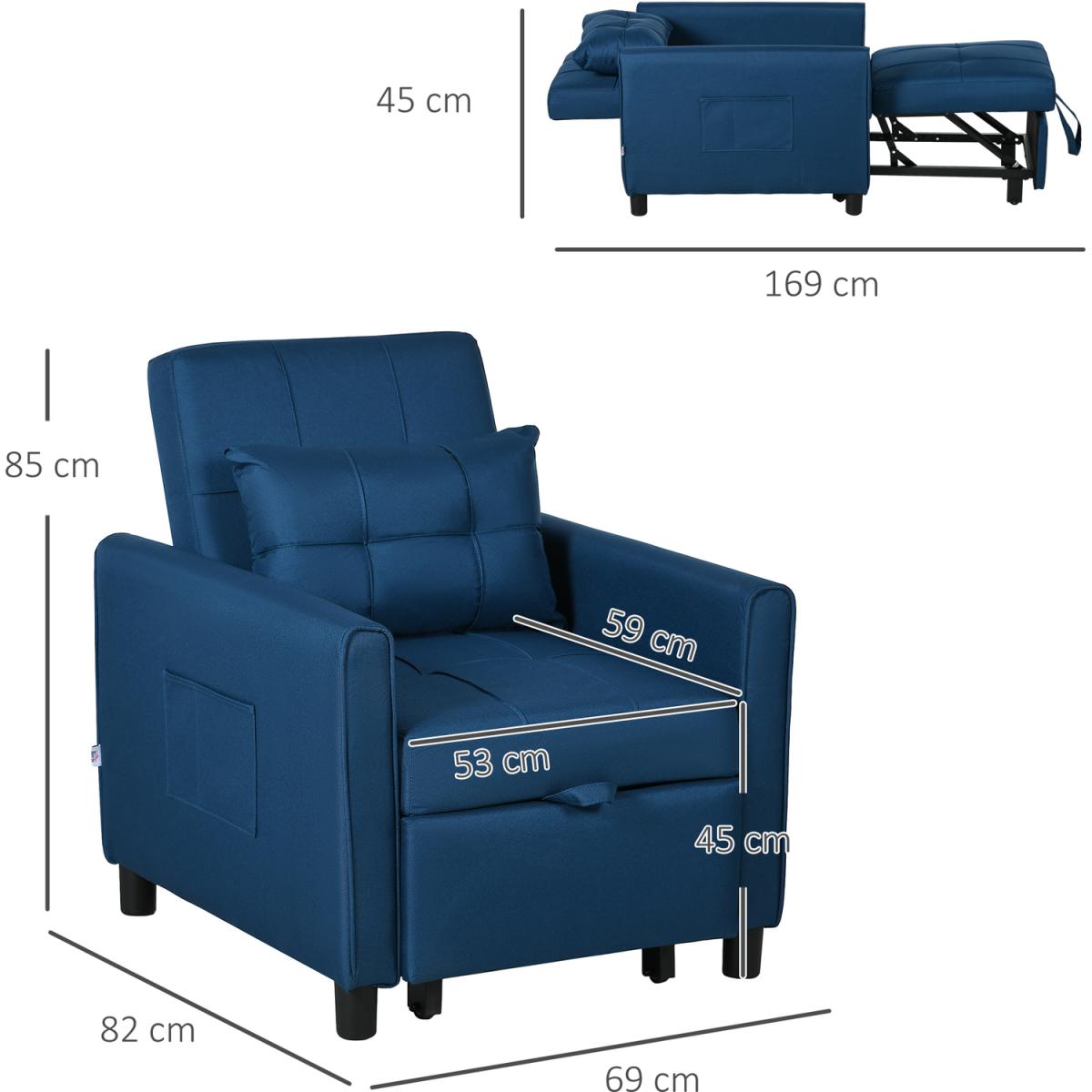 Folding Chair Bed Pull Out Bed with Adjustable Backrest - Blue