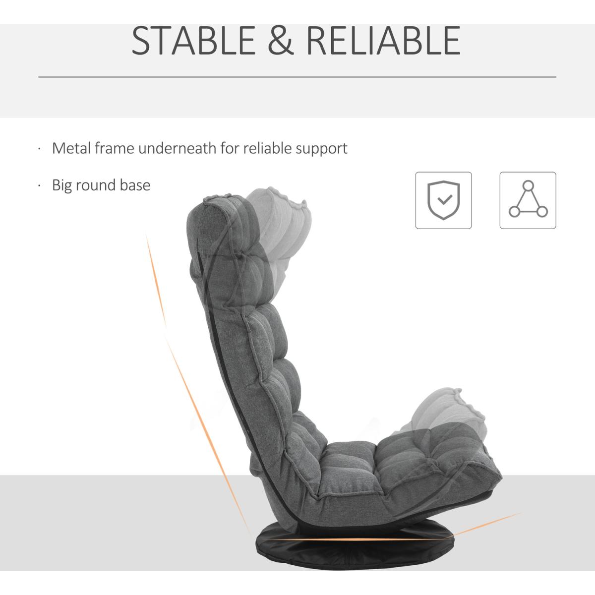 Sitting on the floor will never be uncomfortable again with this lazy floor chair from HOMCOM. Made with a metal frame for a sturdy core and reliable support, it is fitted with thick padding for comfort, wrapped in smooth linen upholstery for easy maintenance. The back reclines to a maximum of 140 degrees, meaning you can set to an angle most comfortable for you. It's finished with a large base to keep it balanced, which also swivels fully. Folds too for easy storage.