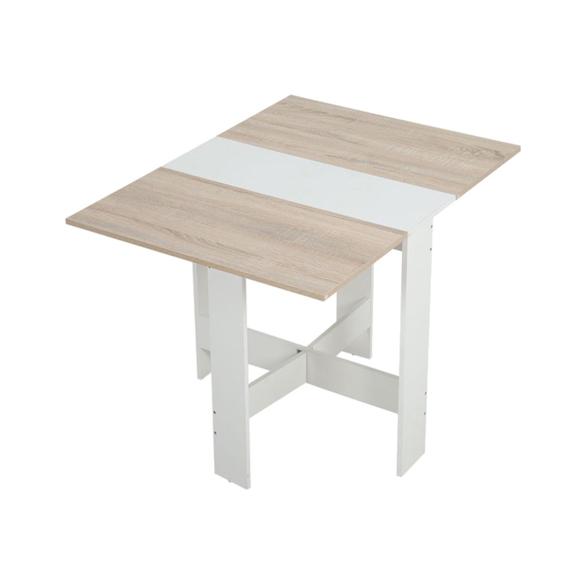 A double drop-leaf design, it can be used three ways as a compact side table, as a half table and as a normal full table, making this drop leaf table the ultimate space-saving table for your home, provides dining use for up to six people when needed. With a smooth melamine coating to protect against light marks and liquid damage. Thick base, ensures the table is steady and balanced, without tipping to one side when only one tabletop is up. Easy and discreet storage, allowing you to keep what you need conveniently close by the drop leaf dining table. This fold up dining table is a welcome addition to every space, in a clean white and oak tone colourway.