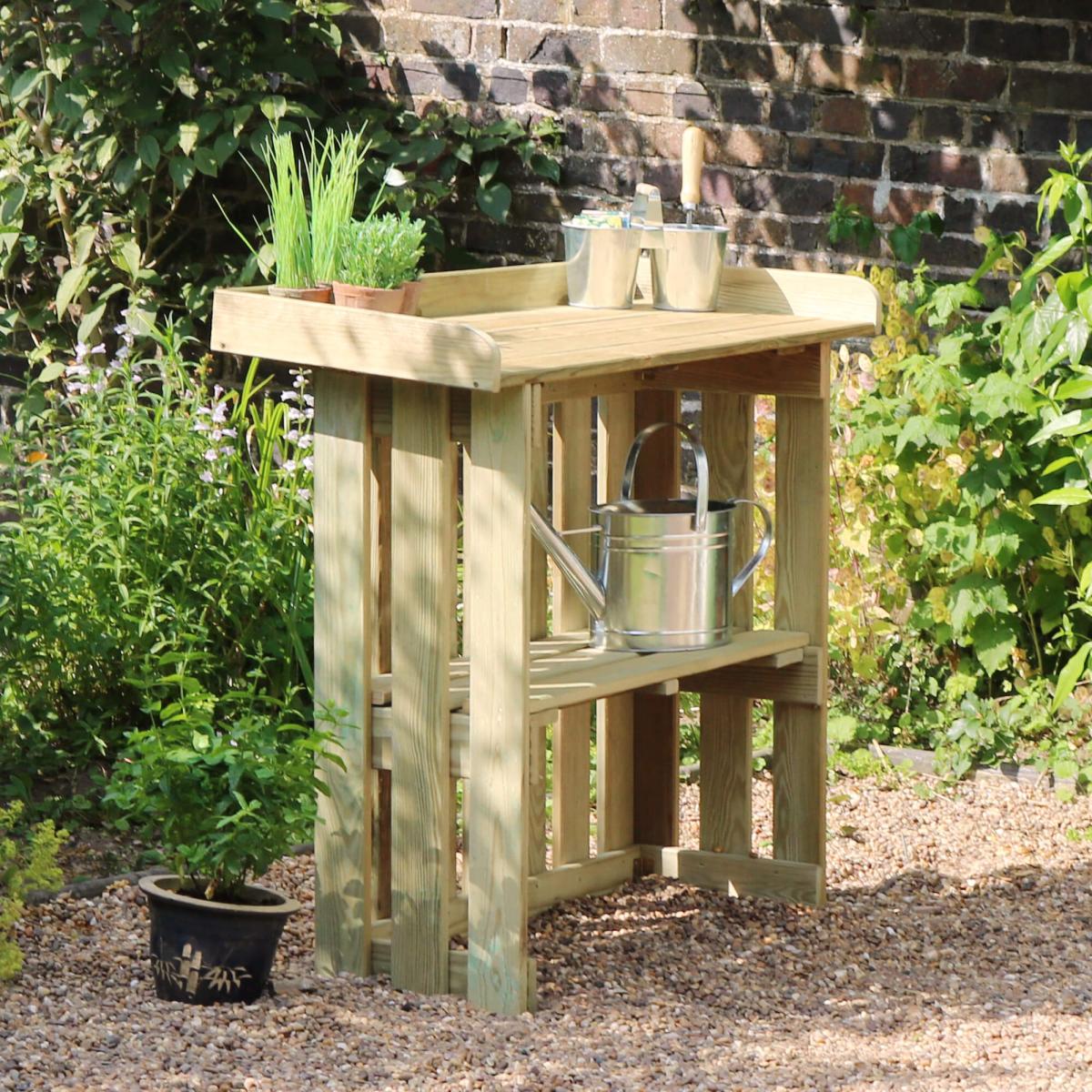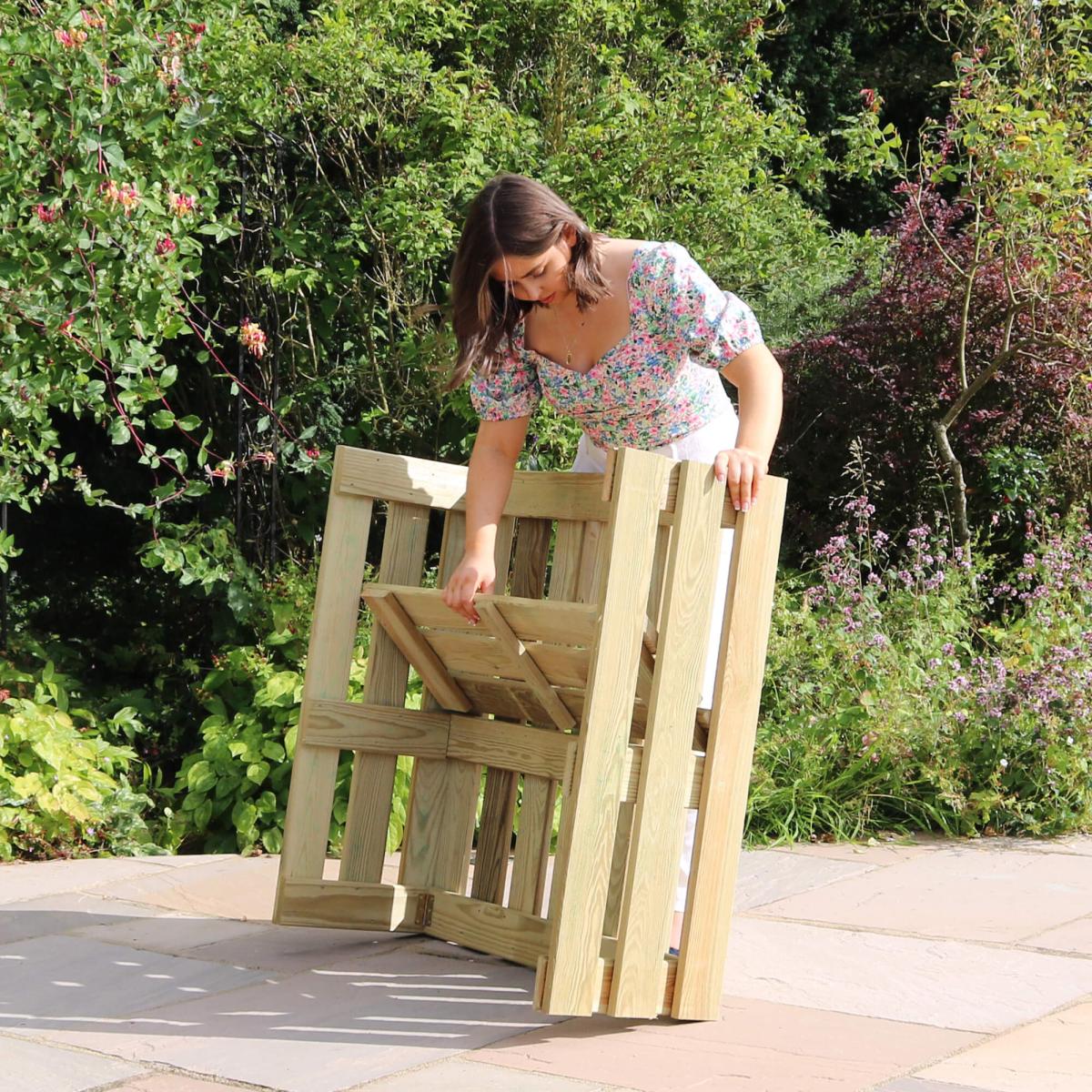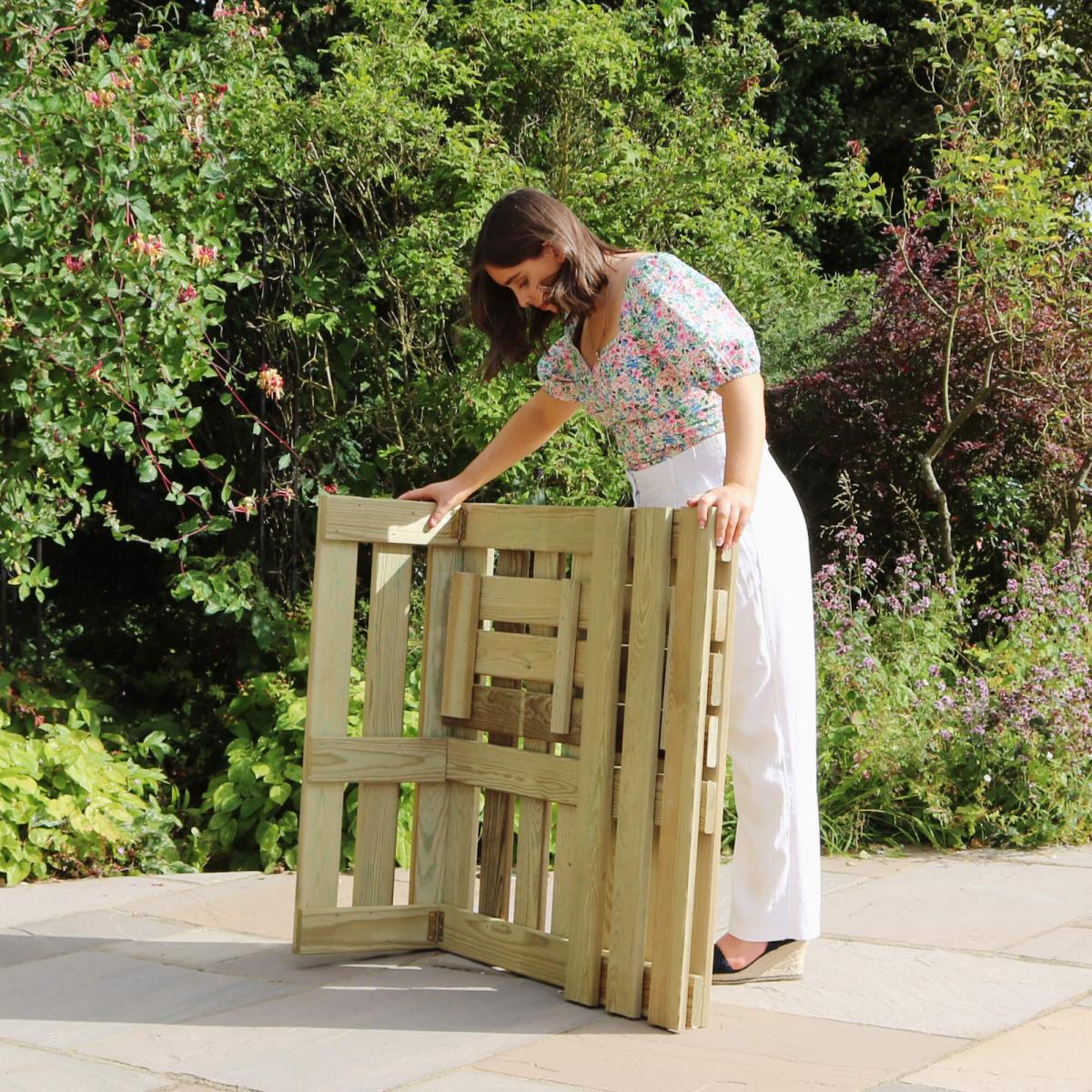 * Multipurpose Folding Garden Bar* Takes moments to construct* Folds away for easy storage* Convenient & handy* Makes a fabulous bar for entertaining* Can also be used as a potting bench or BBQ Side Table* Integrated shelf with additional storage below* 1.09m (wide) x 0.45m (deep) x 0.98m (high)* Tabletop: 1.05m x 0.35m* Side & back panels: 20mm thick* Fascia: 20mm thick* Bracing: 20mm thick* Made from sustainably sourced, slow grown softwood, from responsibly managed forests. * Pressure treated for longer lasting protection* 10 year guarantee against rot The Folding Garden Bar makes entertaining easy and takes moments to construct. Sturdy and well built, it’s designed with no assembly required. Simply unfold the side panels and fold down the hinged shelf and add the countertop. Well designed and practical, it makes a great centrepiece either as a bar or displayed against a wall. Shelving is ideal for glasses and drinks and designed with under shelf space for larger items. Convenient and handy, the Folding Garden Bar is easy to fold away and store. This multipurpose bar also makes a great potting table or BBQ side table. Made sustainably sourced timber from managed forests and with a 10 year guarantee against rot, the Folding Garden Bar is perfect for entertaining family and friends