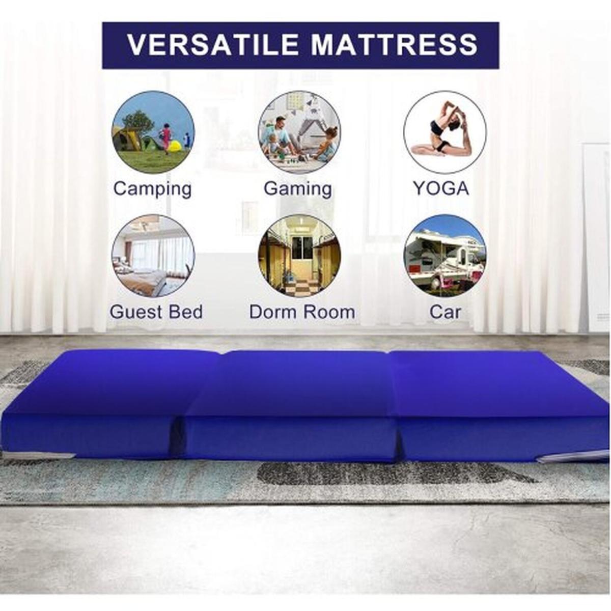 The Z Bed is filled with firm, high density Recon foam for long lasting use. It is upholstered in smooth, durable faux leather fabric. The faux leather cover is wipe clean only. Easy to carry and lightweight - space-saving 3-way foldable foam pad for Kids. Features: Zip, Removable cover for easy maintenance. Size: 51x53x25 cm when folded, 152x51x8 cm when unfolded. Firm Comfort Rating. Suitable for Children's sleepovers, camping, yoga, caravans, gaming. Available in 5 colours including: Brown, Blue, Red, Pink and White. DIMENSIONS: 51x53x25 cm folded, 152x51x8 cm unfolded. Space saving Folding mattress. MADE IN THE UK:Hand made by UK manufacturer, Fully Compliant to BS5852 Safety Regulations, comes ready filled with quick delivery. MEDIUM HARD FOAM CORE Weight: 270g (5.9 lbs). The spare guest z-bed has air fibre foam padding that provides good support, thus ensuring restful sleep. This medium hard mattress has a good air and moisture exchange. IDEAL FOR KIDS SLEEP-OVERS OR UNEXPECTED GUESTS The folding mattress pad offers a quick solution for guests, sleepovers or when you're the road. It is space-saving when folded up and ideal for camping or traveling. children is lightweight and easy to carry. FAUX LEATHER COVER - The cover has a zip, is removable, made of smooth faux leather material which is easy to wipe clean with a wet cloth. Fully reversible with same fabric on both sides.