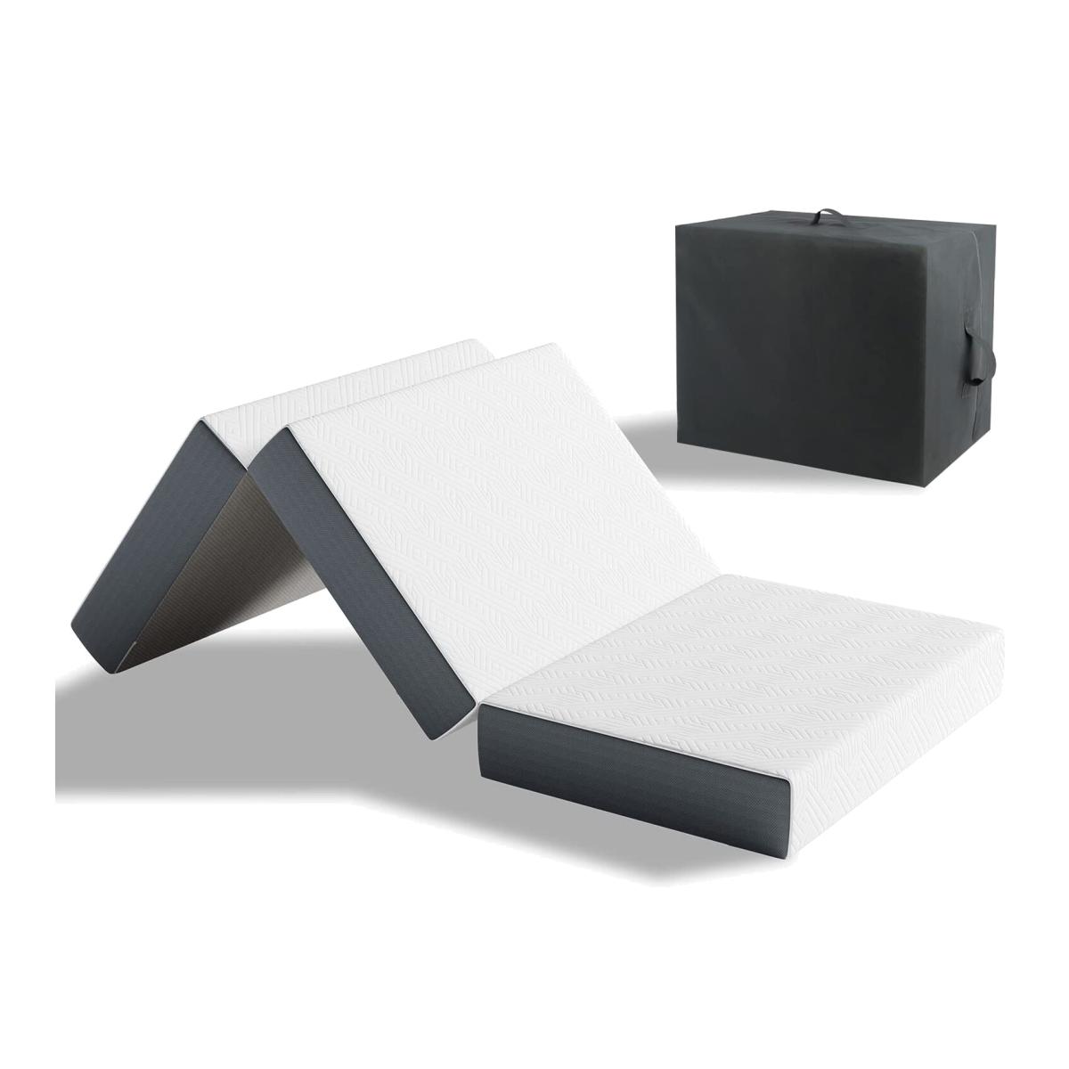 The Tri-Fold Mattress offers versatile comfort and easily transforms into a sofa for reading or gaming. Perfect for guests, camping, or travel, it folds compactly for effortless storage and comes with a durable storage bag. Featuring CertiPUR-U S Certified foam, including gel-infused memory foam and high-density base foam, it provides excellent pressure relief and cooling comfort. The breathable, skin-friendly cover absorbs sweat, dries quickly, and keeps you cool. Additionally, the non-slip bottom and removable, washable cover enhance convenience and maintain cleanliness.