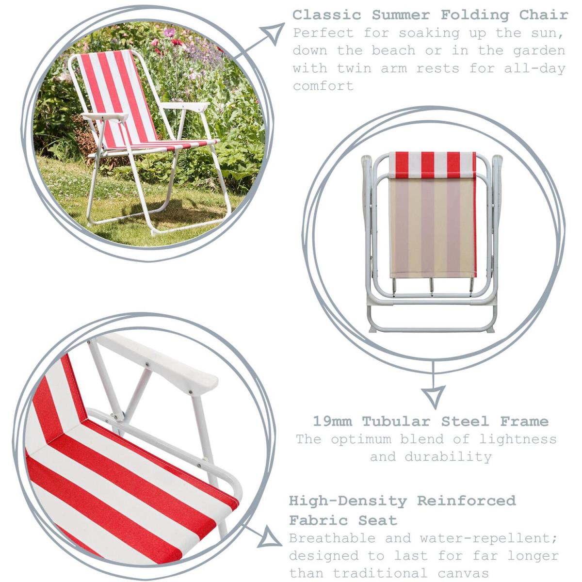 This portable beach chair is perfect for days out on the beech or in the garden with the family and kids so you can sit down in the comfort of a chair rather than sitting on the hard floor. Strong supportive metal frame, making transferral of chair from one location to another an easy activity. Manoeuvre from folded position to open position is swift so the chair opens up easily. Comfy yet strong making it the perfect durable chair. The stripe design adds authenticity to the usual plain styled canvas of the portable folding bech chairs, making the chair look modern and fresh.