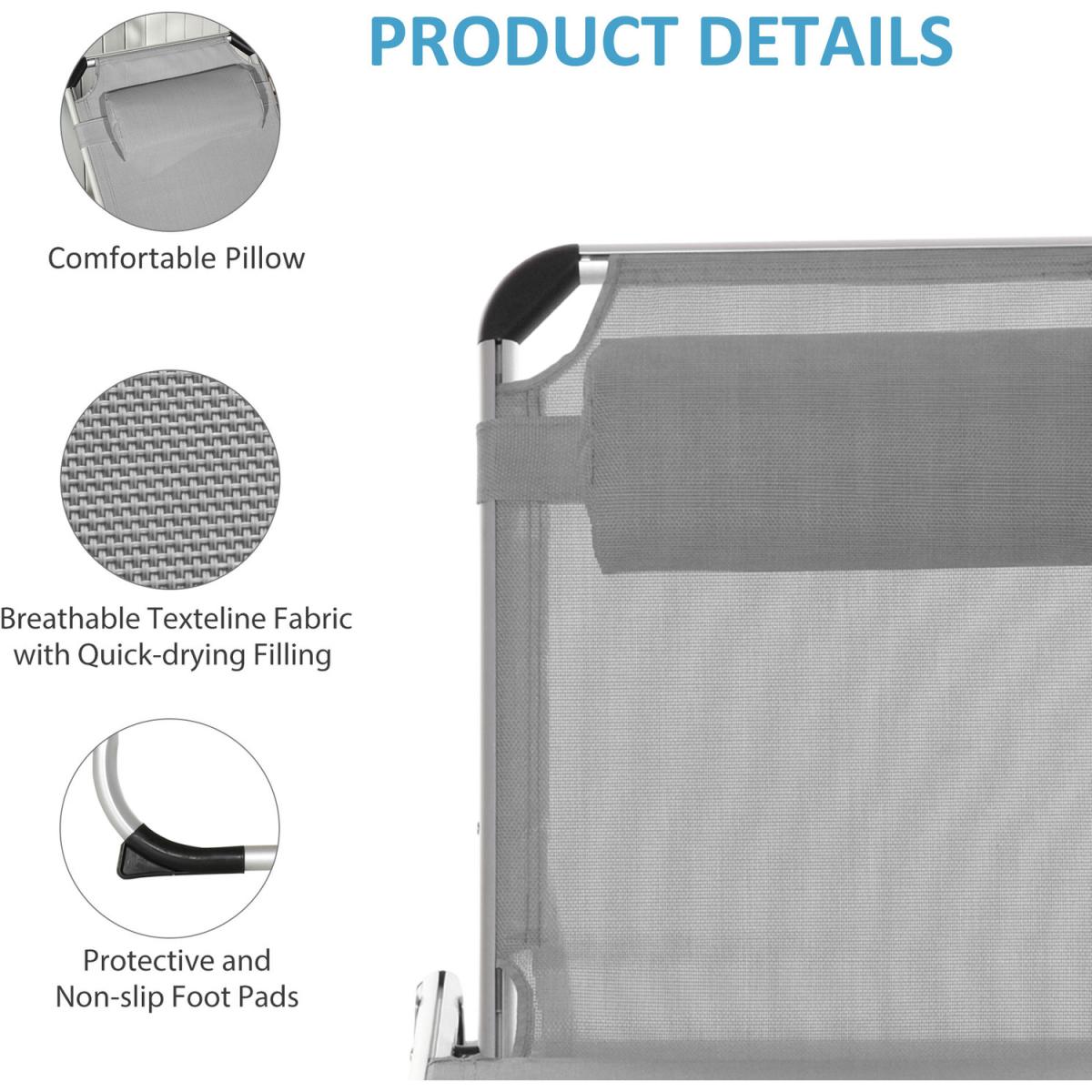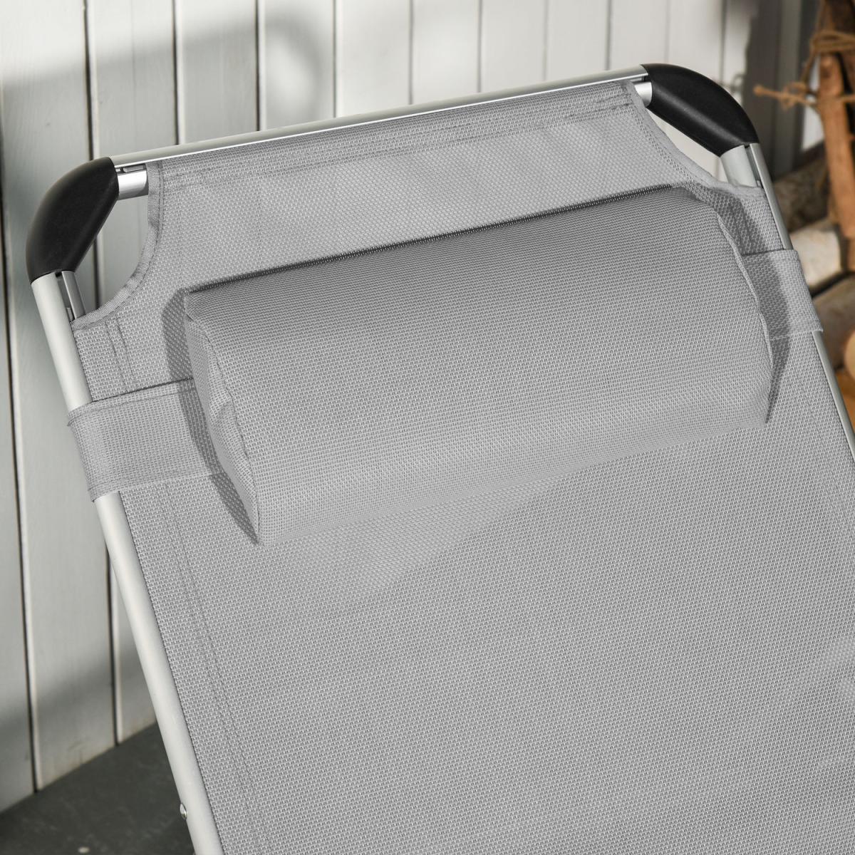 Lounge outdoors the classic way - go for this folding recliner from Outsunny. The frame, made from aluminium, is sturdy and supports up to 120kg, with footpads on each corner so it keeps balanced. The back can be adjusted to four different positions to set to the angle most comfortable when you lie back. There's a texteline fabric seat stretched on the frame to hold your body, with a removable pillow on the top to support your head/neck and keep it comfortable. When not in use, this lounger can be folded into a third of the size, making it easy to carry and a compact size for storage. A perfect piece to put in your car for those weekend beach trips.