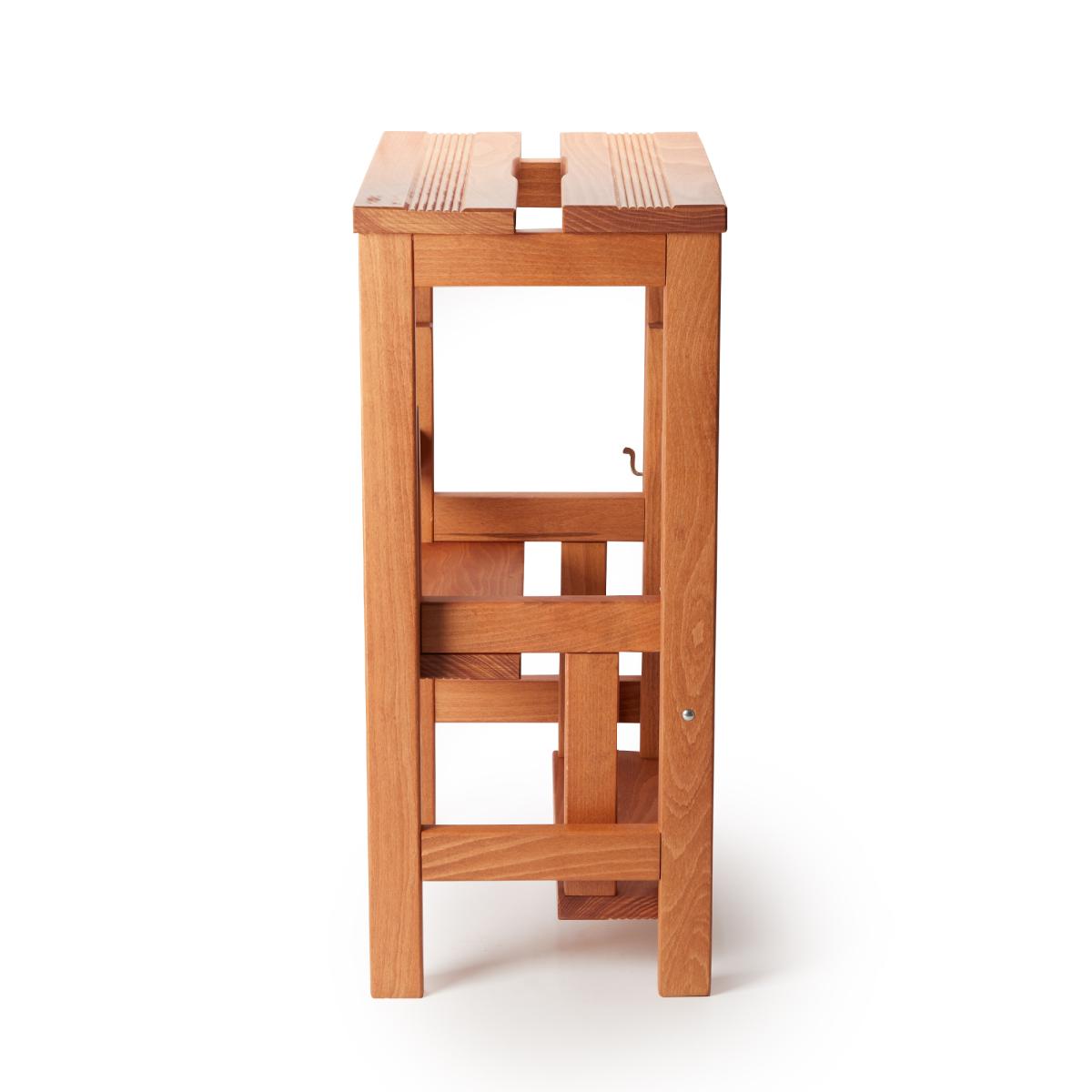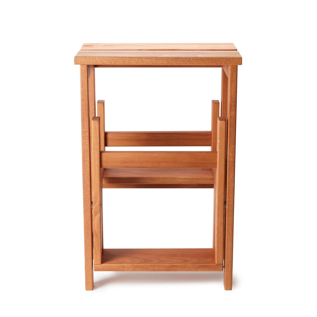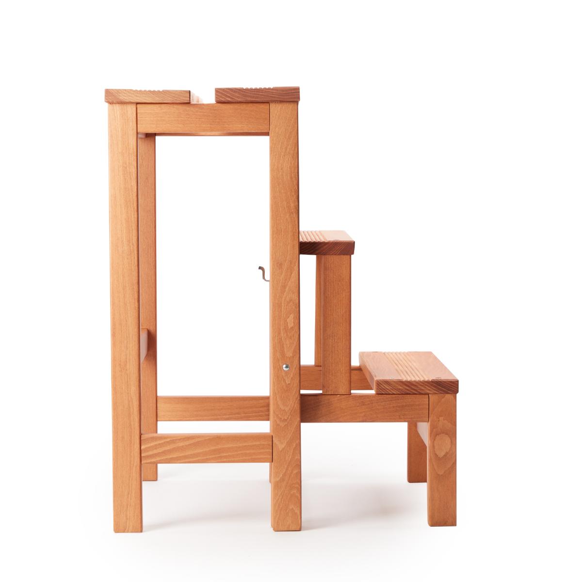 Cleverly designed by us for use as a stool and as a ladder, this Folding Step Stool in a cherry wood finish will help you reach your kitchen’s highest shelves. Finished with horizontal non-slip grooves on the highest rung, the folding step stool is crafted in Italy from wood and finished with two layers of opaque acrylic varnish that offers superior protection against scratches. A refined design and perfect for reaching kitchen cabinets, bookshelves, and storage units, the Step Stool folds into a compact form to help save space and provide extra seating.