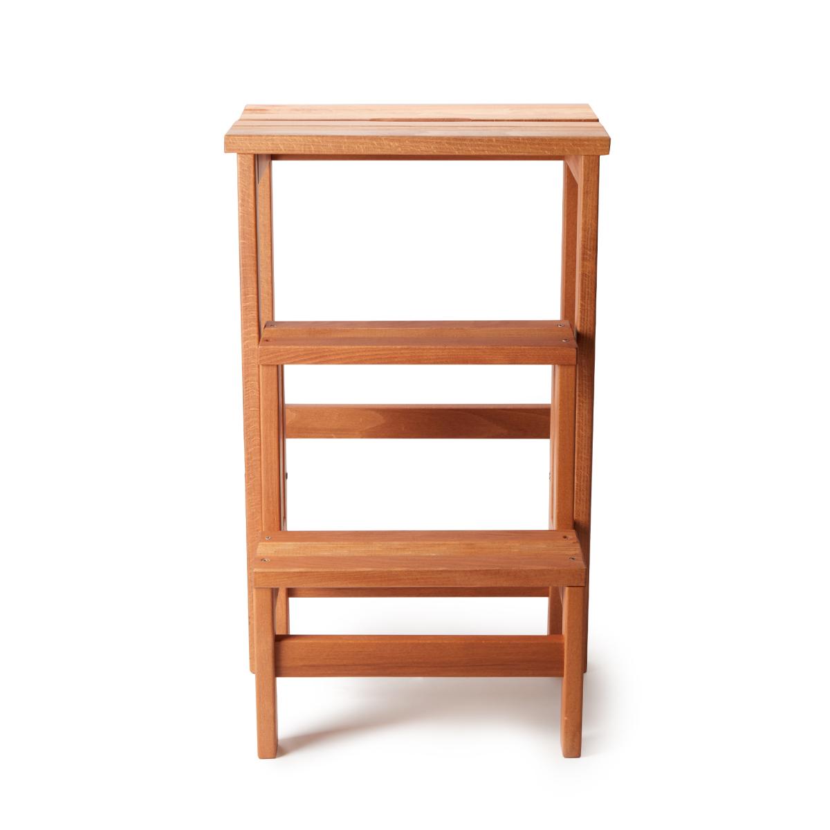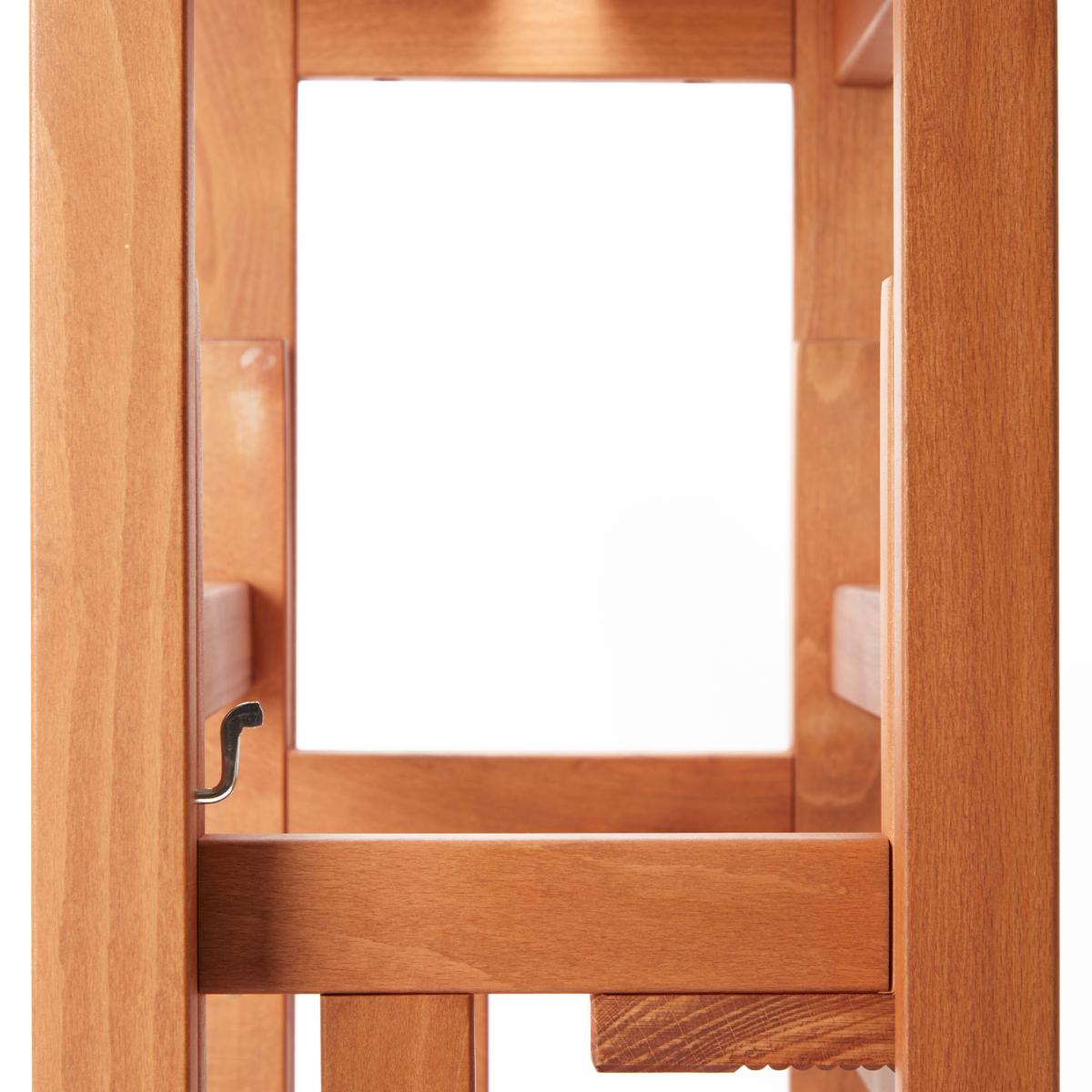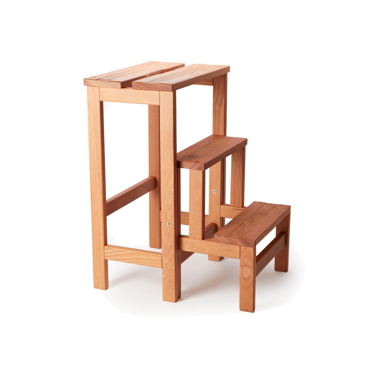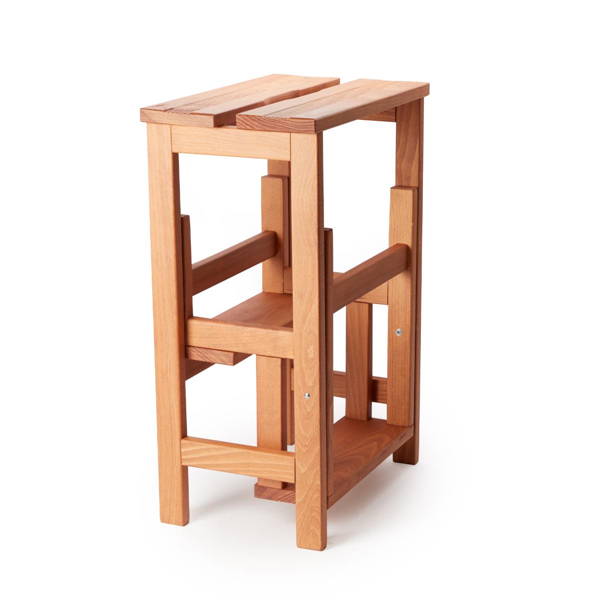 Cleverly designed by us for use as a stool and as a ladder, this Folding Step Stool in a cherry wood finish will help you reach your kitchen’s highest shelves. Finished with horizontal non-slip grooves on the highest rung, the folding step stool is crafted in Italy from wood and finished with two layers of opaque acrylic varnish that offers superior protection against scratches. A refined design and perfect for reaching kitchen cabinets, bookshelves, and storage units, the Step Stool folds into a compact form to help save space and provide extra seating.