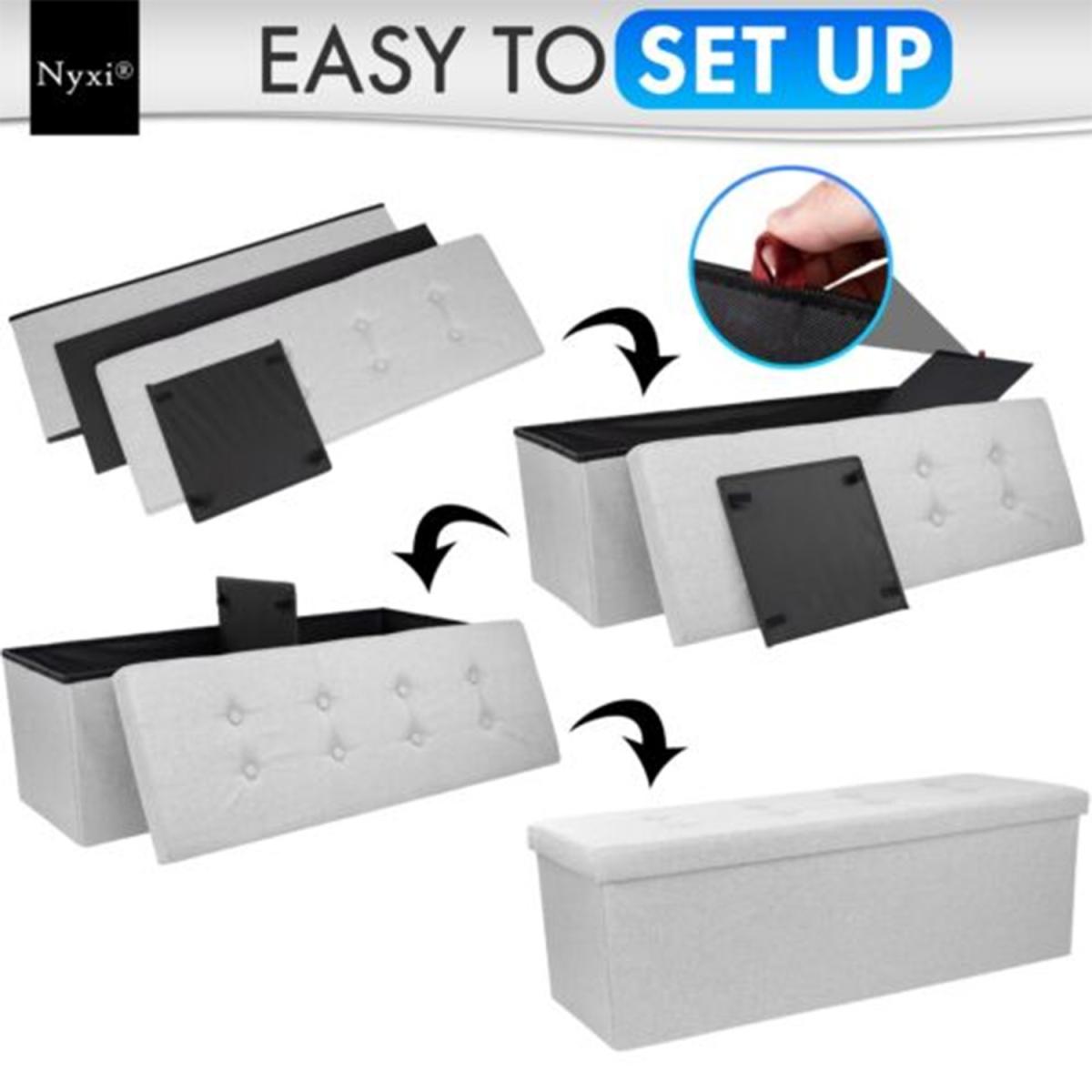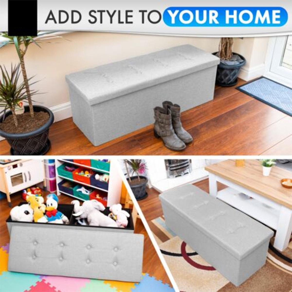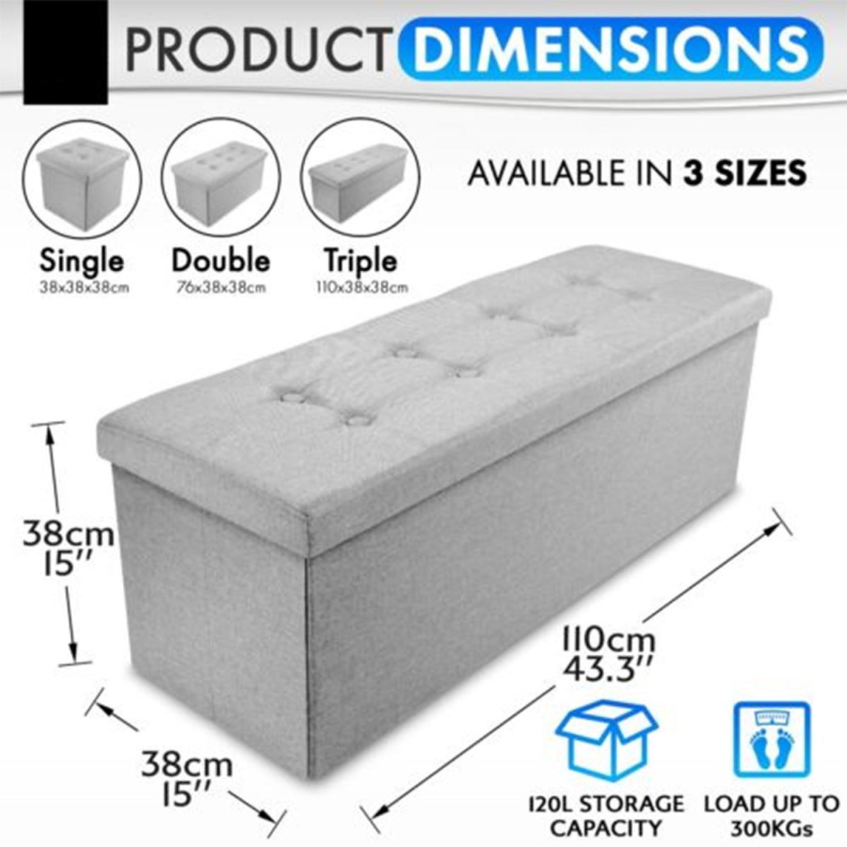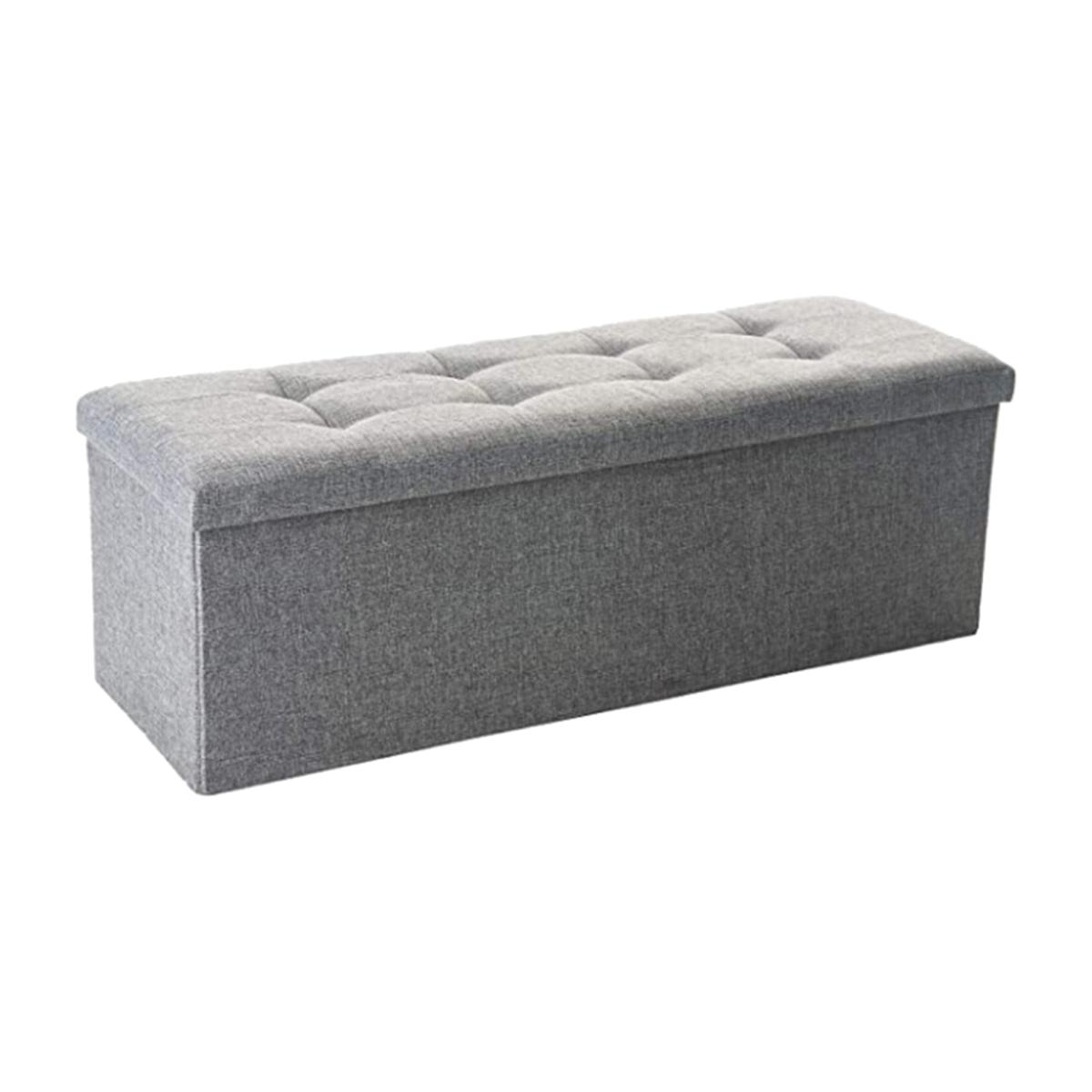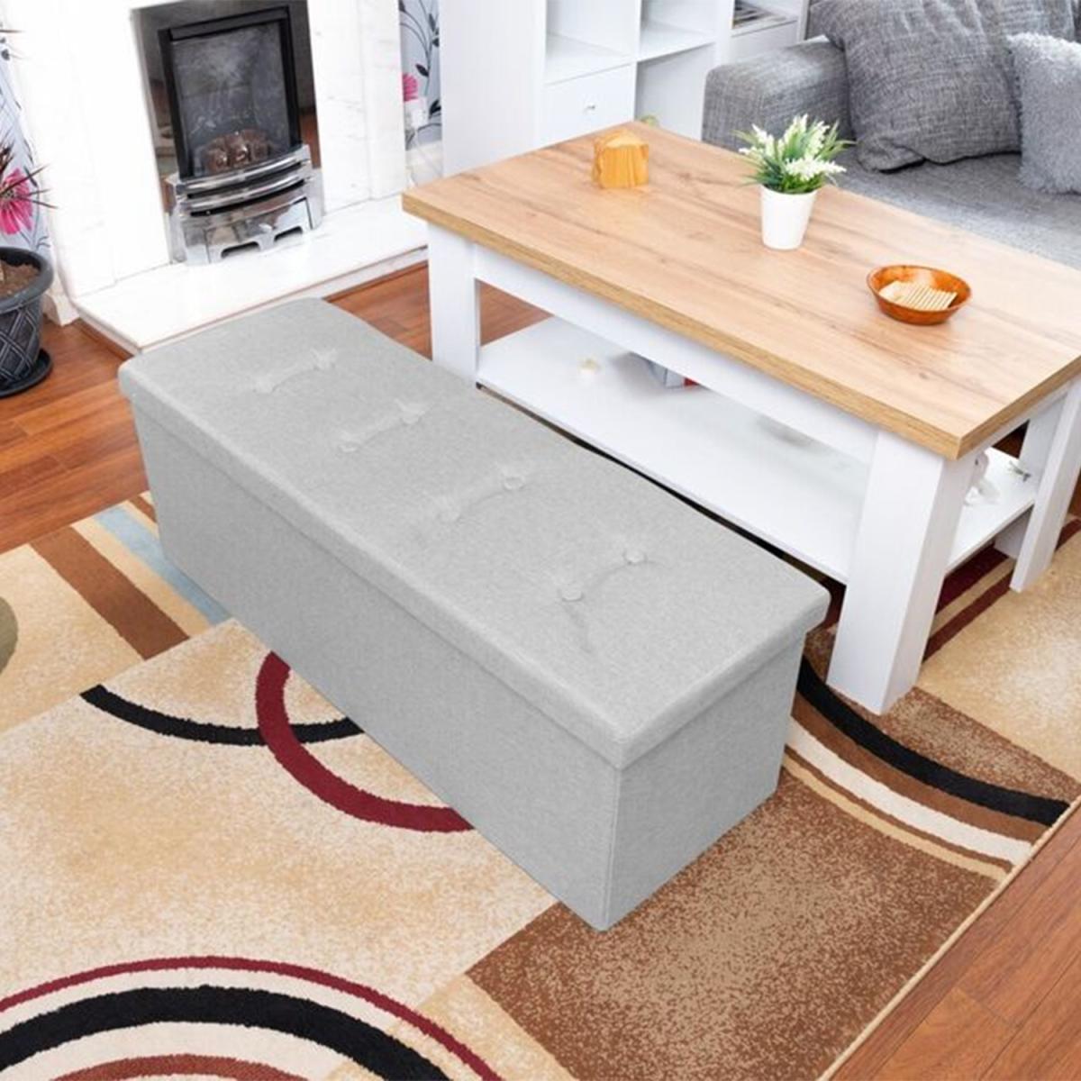 Folding Storage Box Ottoman Seat Footstool - Light grey / 110cm