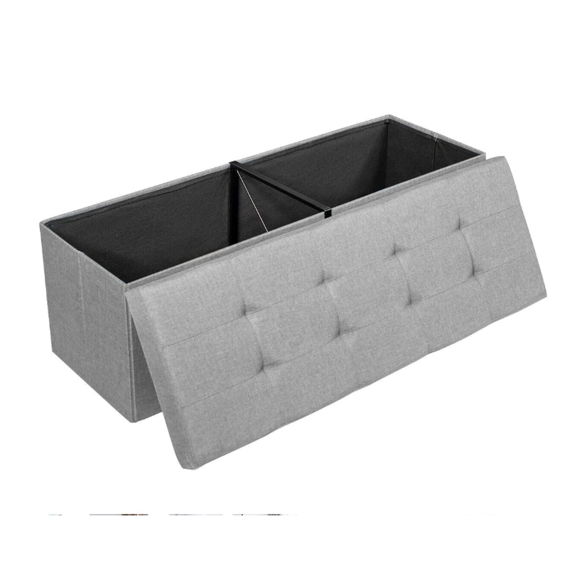 Folding Storage Ottoman Bench with Lid - Light Grey