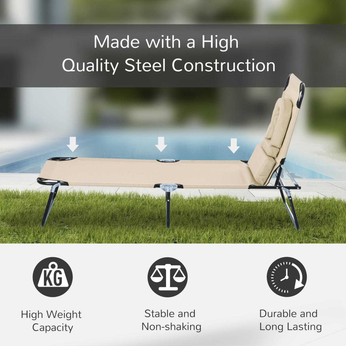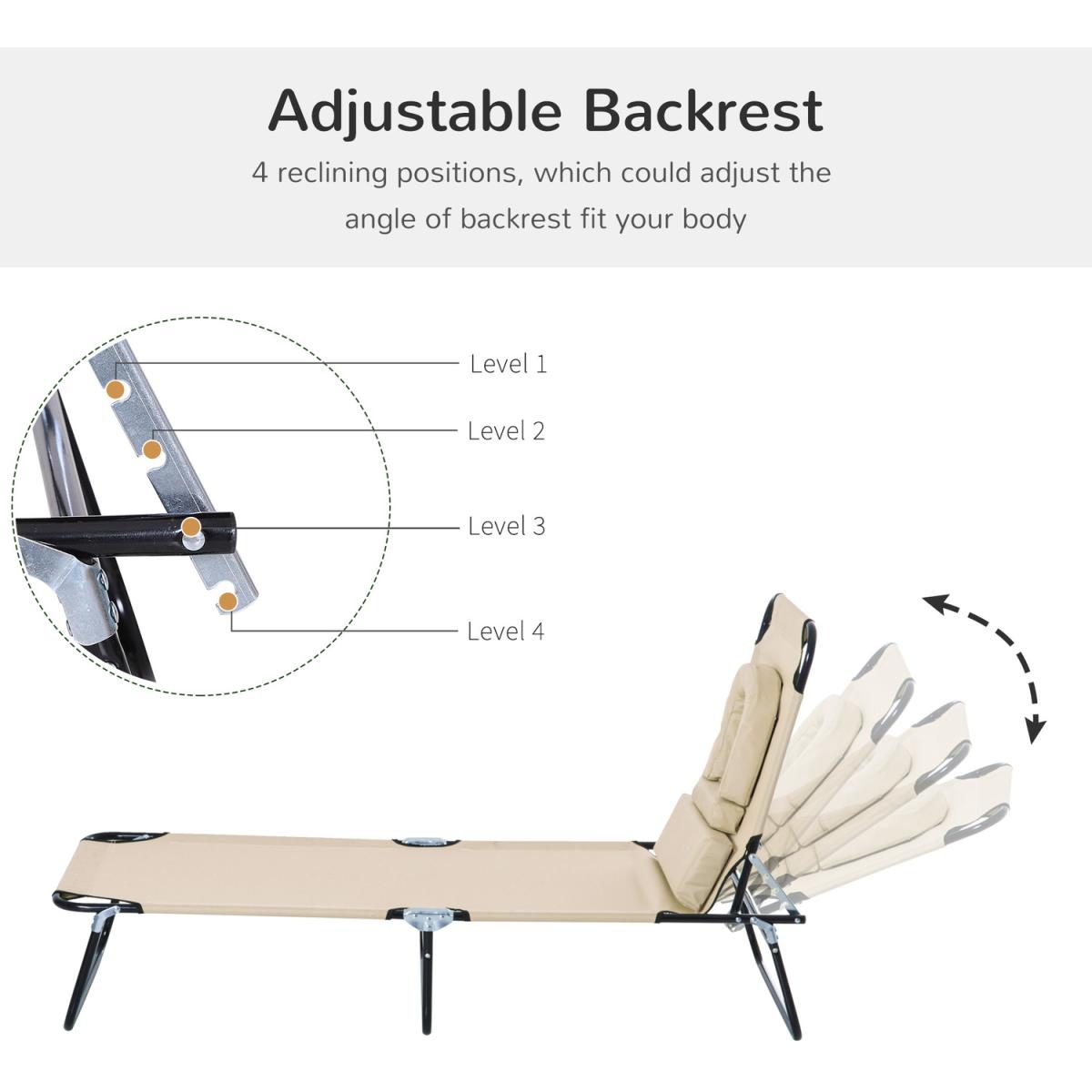 The premium Outsunny recliner is comfortable, stylish furniture. Sturdy steel tube frame and durable oxford fabric supports up to 120kg. The chair can be adjusted with a locking system and provides 4 positions. Folds down for ease of storing in slim and narrow areas when not in the use. Comes with a lumbar support pillow. Designed for many settings such as camping, pool days, patio furniture. Comes fully assembled and you can easily use relax whenever use the chair.
