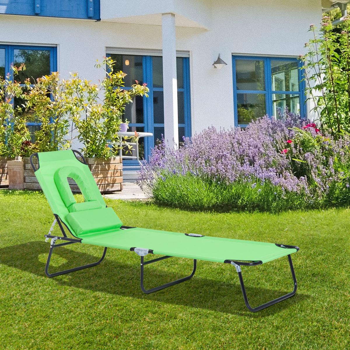 Folding Sun Lounger with Pillow - Green