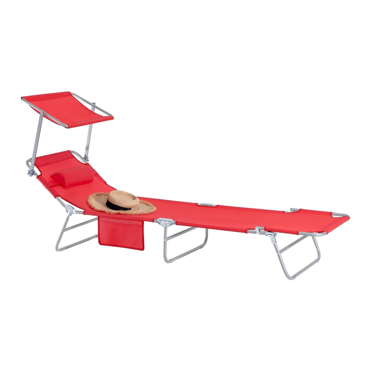 Lightweight and sturdy outdoor folding sun lounger is good for value! The adjustable sun shade offers reliable UV and sun protection.5-position adjustable backrest tilt up to 90 degrees to fit your different demands. It is very comfortable to lie on the headrest. The side bag is ideal for a phone, book, sunglasses, drink, etc. Powder-coated strong metal tube frame, smooth and rust-resistant. Foldable, easy to store away and little space taking. It comes in a flat pack and requires easy and quick self-assembly---Just put the headrest and sun shade on the lounger. Detailed instructions are supplied. The decorative elements are not included in the delivery.