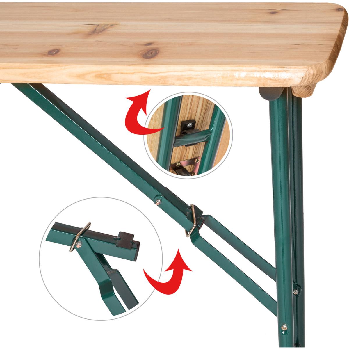 Any garden party should not be without this practical 4x bar folding table in a beer table design. This set can accommodate up to 20 people. The quattro beer tent table is very stable and robust. It can be folded in a few steps to save space and transported in a car trunk, for example. There is a hole in the tables middle which can accommodate a parasol or umbrella.