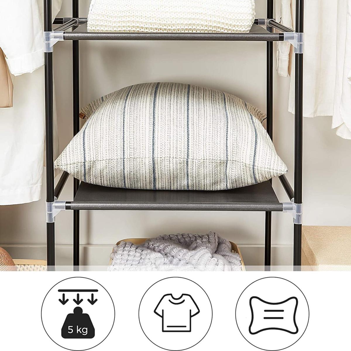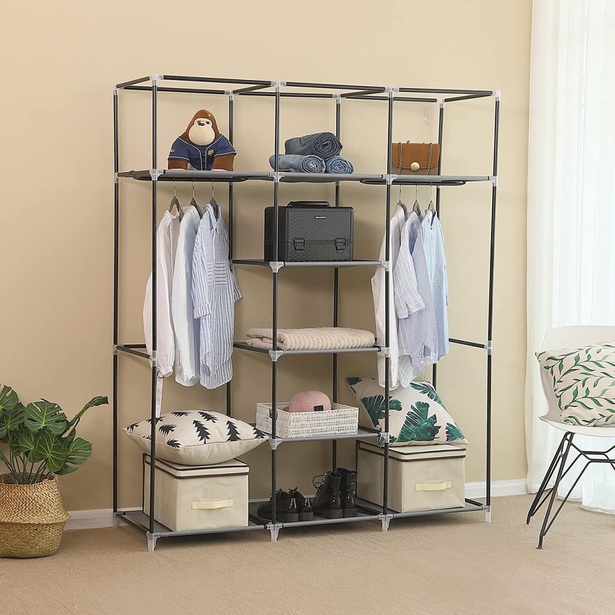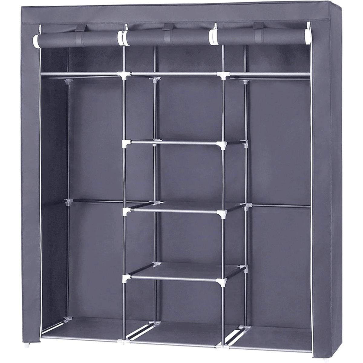 His Portable Closet Storage Organizer Clothes Wardrobe is Made from Selected Non-Woven Fabric Cover, High Quality Steel Tube and PP Plastic Connectors, Which Will Durable and Meet Your Long Term Storage Needs. The Size for The Clothes Wardrobe Makes it Suitable for Organizing Your Small Rooms and Walk-In Closet. Movable Improved Clothes Hanging Rod and 12 Storage Shelves Offers You Enough Space Both for Your Longer Outfits and Folded Clothes. Zippered Dustproof Cover Offered to Keep Your Item Away from Dust and Water-Proof Fabric Tiers are Easy to Clean. It Will Be Great Convenient and Functional. Do Not Hesitate to Buy One!
