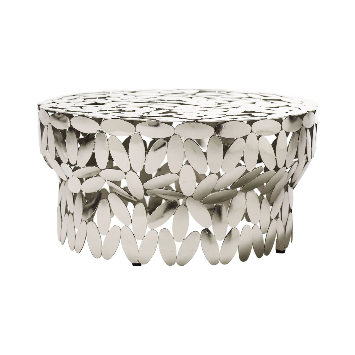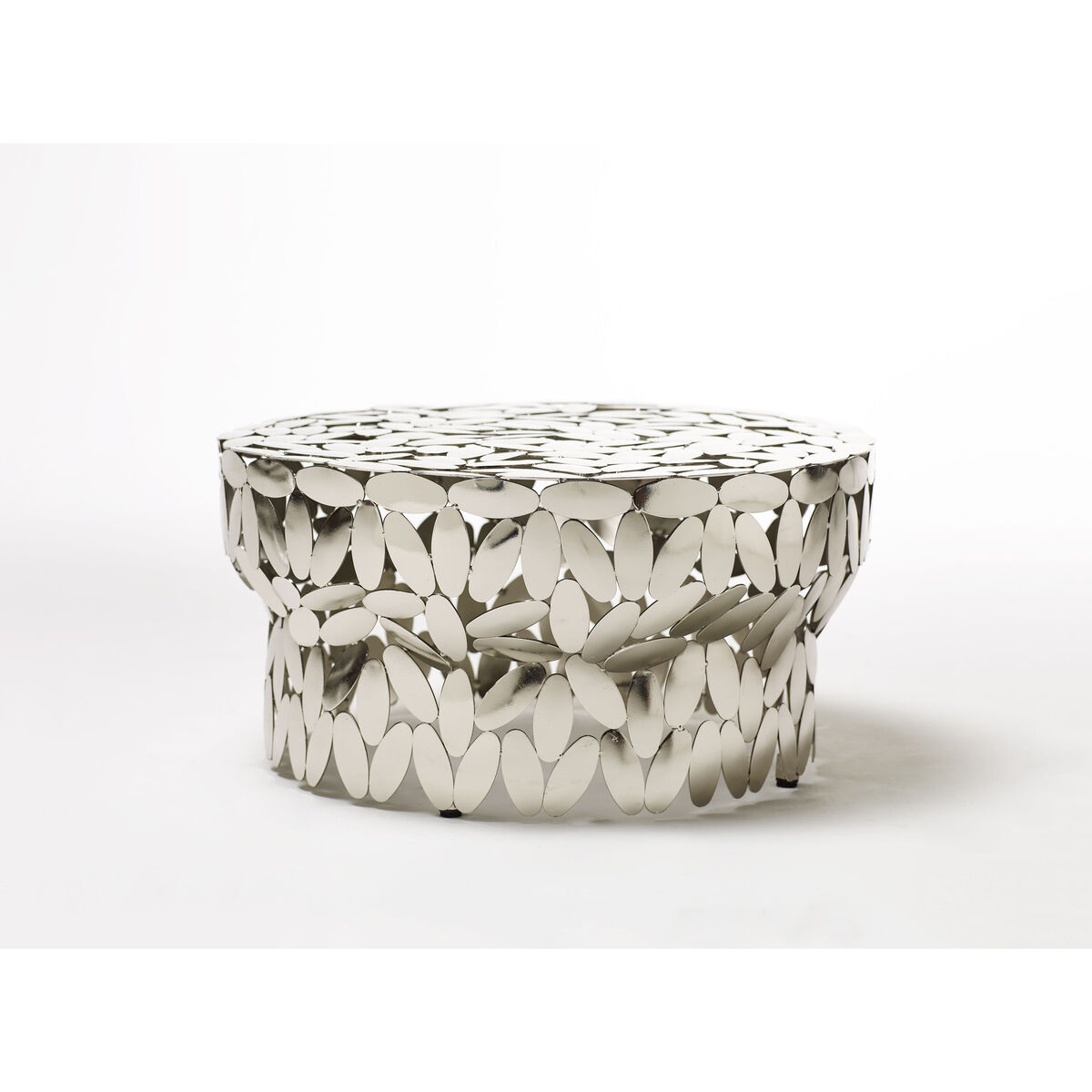 Leaves that give shape and life to objects. This is Roberto Mora's concept, placing the leaf at the centre of his work. This is how he created the Foliae collection, that includes stools, tables and lights made from multiple small leaves painstakingly joined together by Italian craftsmen. The leaf is both key to his creations and a strong symbol of nature for the designer. This elegant coffee table made from steel leaves is plated in a superb galvanised nickel finish. Its sculptural outline, somewhere between art and design, is incredibly expressive. Foliae looks like it will come alive in our interiors thanks to the heap of delicate, light leaves that fuse like real foliage. This coffee table will instantly add a poetic, natural and refined touch to your living room or bedroom.