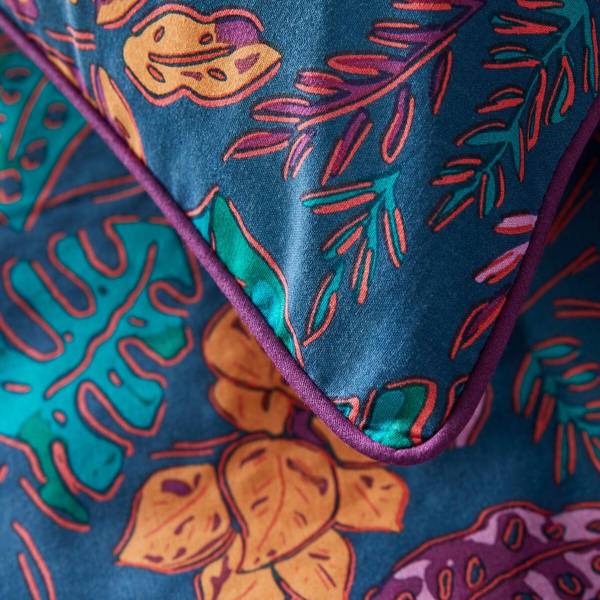 The Foliaro bed linen creates a colourful universe.. a profusion of palm trees and exotic flowers, in a tropical atmosphere. Designed by La Redoute Interiors. Cotton is part of our daily lives. We love it for its suppleness and softness. Easy Care, it is ideal for the beds of young and old alike!Product Details • 100% cotton • Contains 30% recycled cotton • 144 thread count • Tropical print on both sides • Contrasting taped edging • Straight buttoned hem Care Advice • Machine washable at 60°C • By washing your laundry at 40°C instead of 60°C, you limit energy consumption. Dimensions • 140 x 200cm: Single • 200 x 200cm: Double • 240 x 220cm: Super King • 260 x 240cm: Super King • Recycled cotton. Using recycled cotton is all about conserving resources and reducing waste. • OEKO-TEX® Standard 100. Standard 100 certification by OEKO-TEX® tests textile products for harmful substances via an independent, international label.