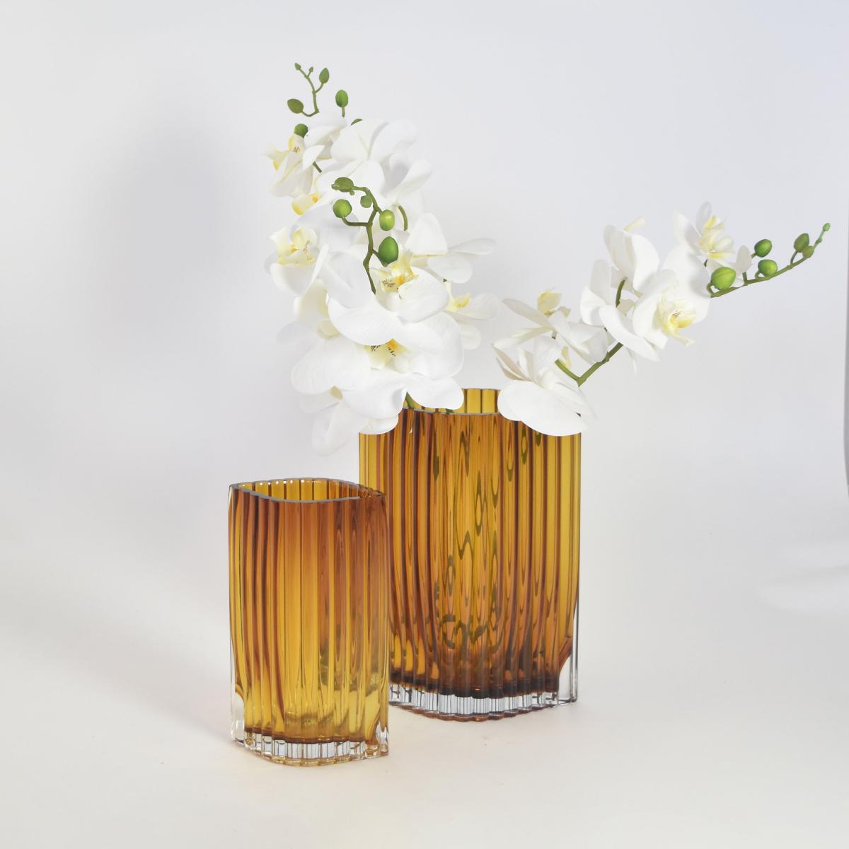 The small orange vase is perfect for adding a pop of colour and texture to both modern and eclectic interiors. Its clean, cylindrical silhouette combined with the warm amber hue makes it versatile-ideal for dressing up a side table, shelf, or console. I particularly love it as a standalone piece with a single statement stem or a small bunch of dried botanicals for understated elegance. Practical styling tips include pairing it with neutral tones to let the colour pop, or mixing it with other textured ceramics for a layered look. Its size makes it suitable for compact spaces, while its striking colour and design ensure it remains a focal point in the room.