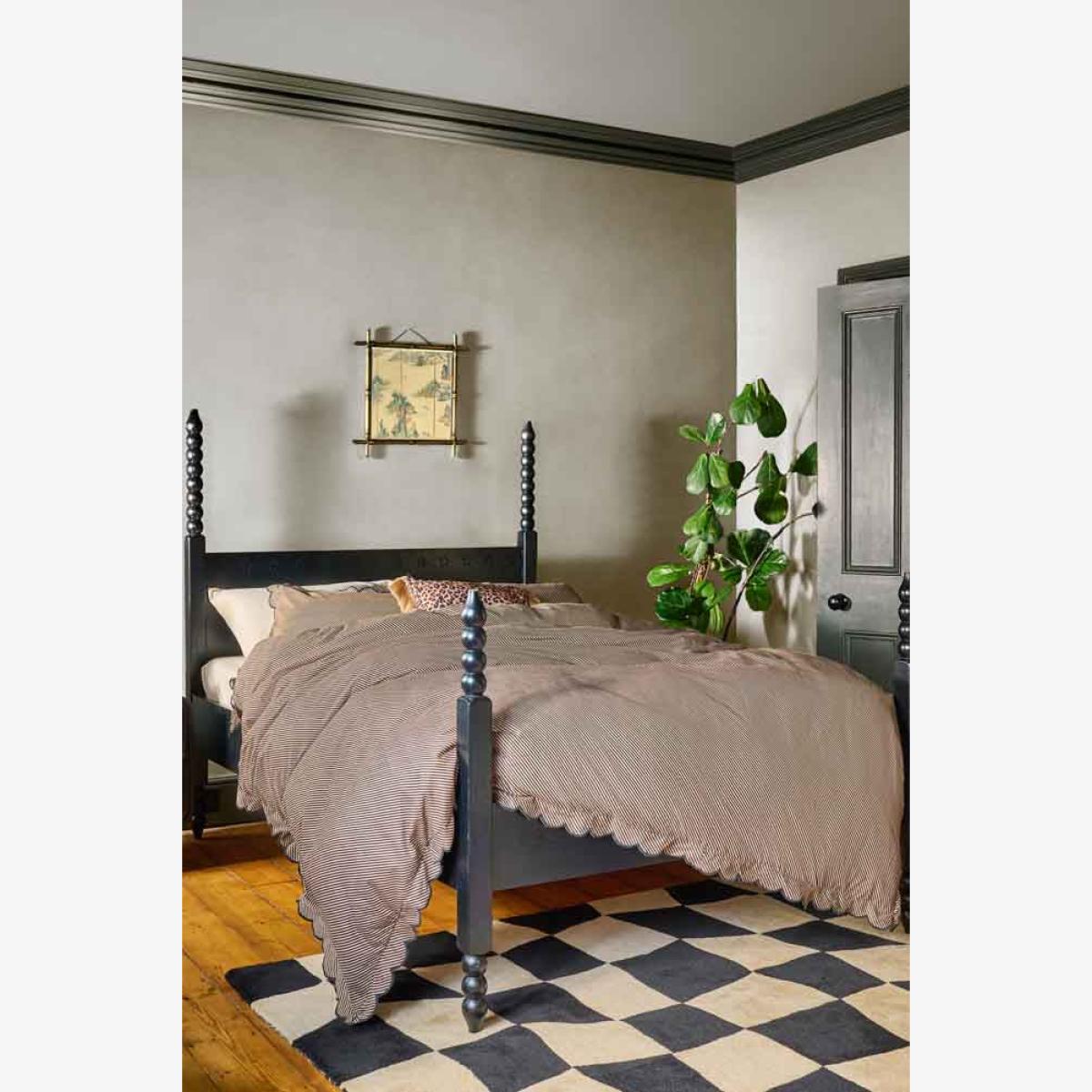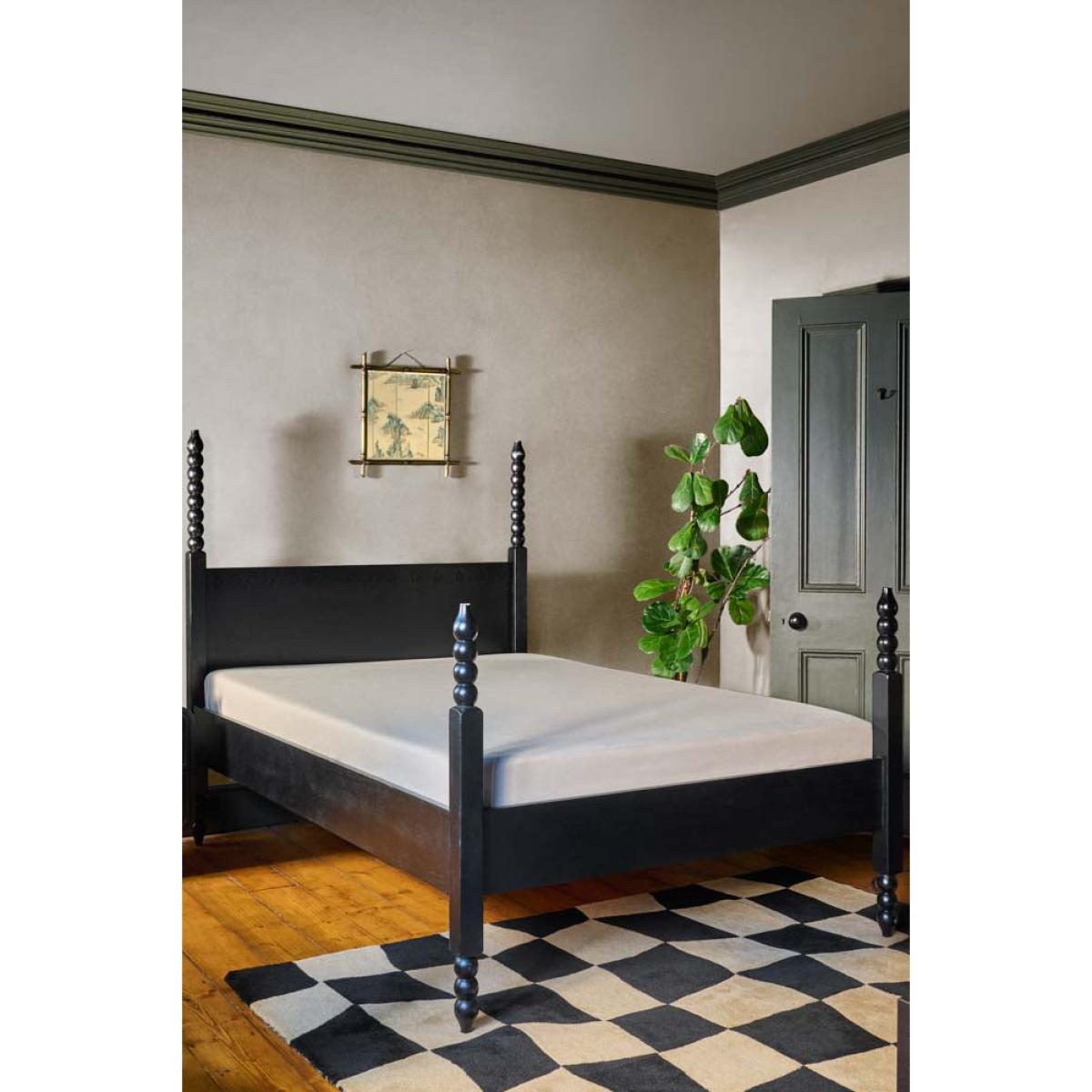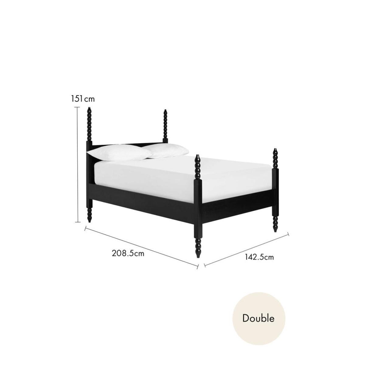 This gorgeous piece of grandeur is just the ticket for the sanctuary that is your boudoir – the place you retreat to when you need to relax and recharge. With wood-turned posts, a dark wood finish lending touch of mystery, and a four poster-eqsue feel about it, this beautiful bed feels like a piece you’d find in a boutique hotel. It’s a vintage-style investment piece that you’ll treasure for years to come - style this in a cream room, with cream bed linen and you’ll create a sanctuary you’ll never want to leave. Just fabulous. - Folk Bobbin Bed - Two Sizes Available- Double bed measures: H151cm x W142.5cm x D208.5cm; Kingsize bed measures H151cm x W157.5cm x D218.5cm- Material:Poplar, Plywood, Particle Board <!--td -->
