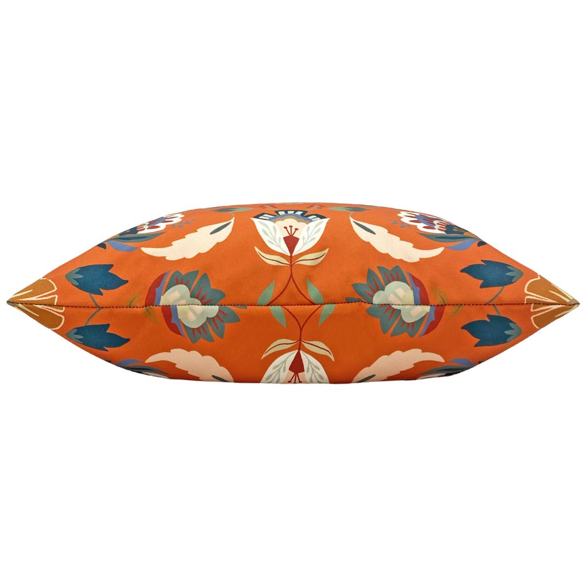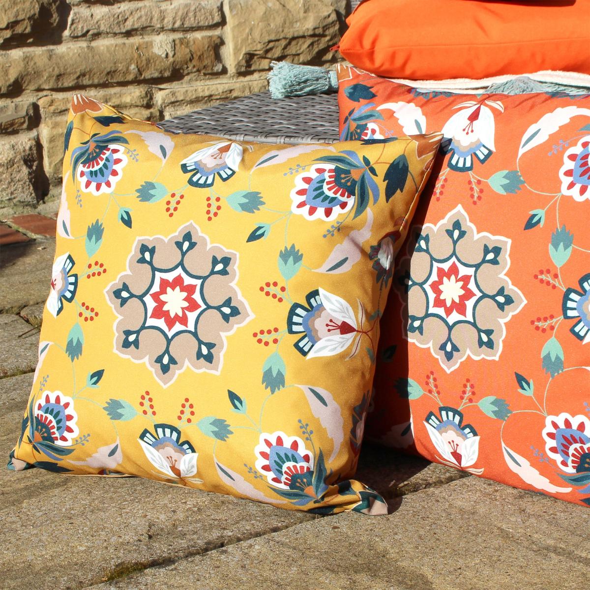 Featuring a graphic design inspired by traditional Folk art and vibrant floral tones. The Folk Flora Outdoor Cushion is complete with standard knife edging and hidden zip closure. Made of water and UV resistant polyester, this outdoor cushion is designed to withstand showers and spills. Designed, printed and made in the UK.