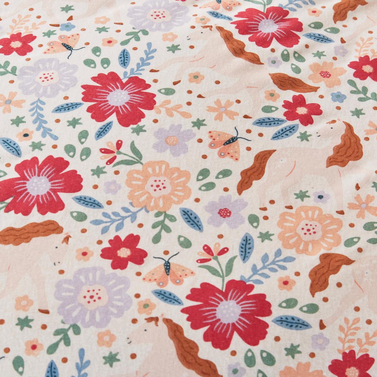 * Bright and playful floral Design* Soft and Cosy brushed cotton* Button Fastening* Machine Washable* Corresponding items available Add a touch of whimsy to your child's room with the Folk Horse brushed cotton duvet and pillowcase set. Bursting with bright and playful floral patterns, this bedding set is as charming as it is comfortable. Made from snug brushed cotton, it promises a warm and cosy sleep. The reversible design provides two delightful looks, while button fastening and easy machine washability make it a practical choice for any bedroom. This collection is verified by OEKO-TEX and independently tested for harmful substances as well as manufactured using sustainable processes under socially responsible working conditions. MADE IN GREEN by OEKO-TEX is a unique product label to trace the countries and production facilities - search the product label for more information.